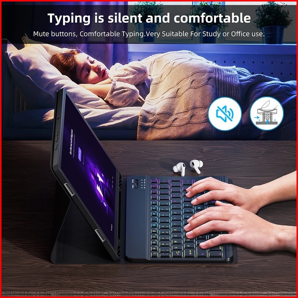 Goojodoq Case For Samsung Galaxy Tab A8 A9 S7 8 9 Case Keyboard For Samsung Tab S6 Lite Case Rainbow Keyboard Mouse For