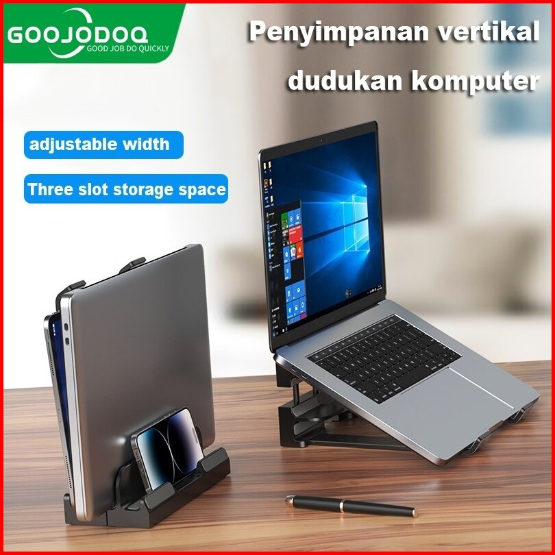 Goojodoq Dual-use Desktop Tablet Stand Laptop Stand Adjustable Height Vertical Storage Rack Adjustable Width