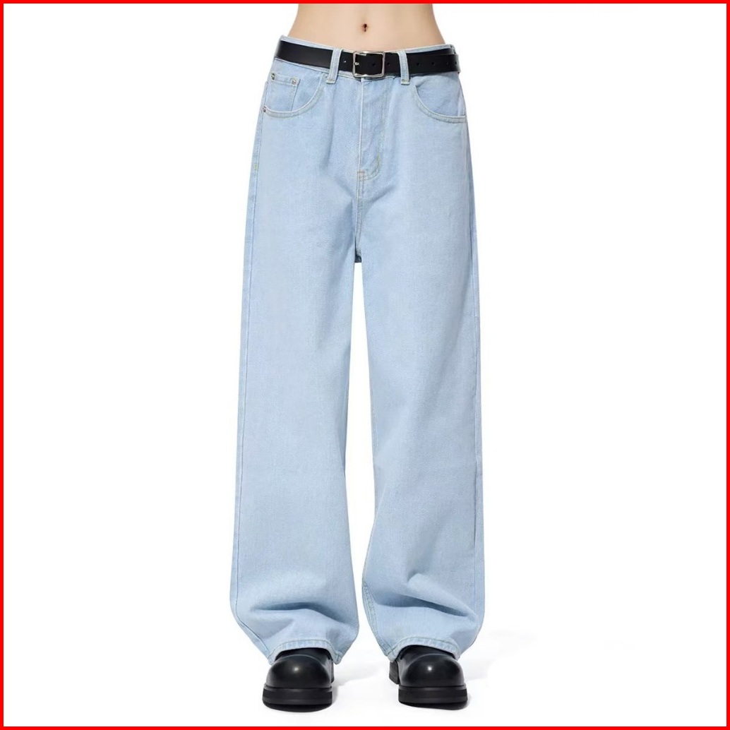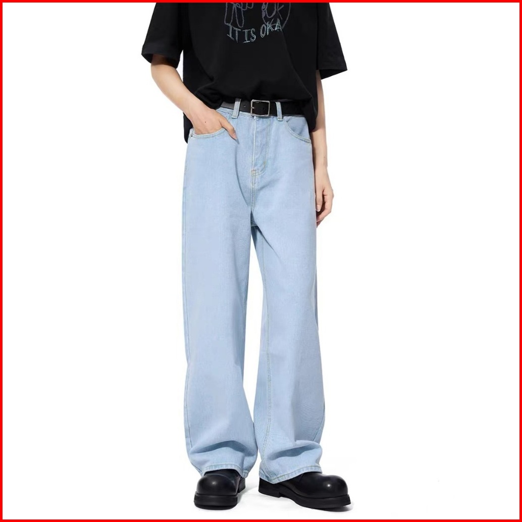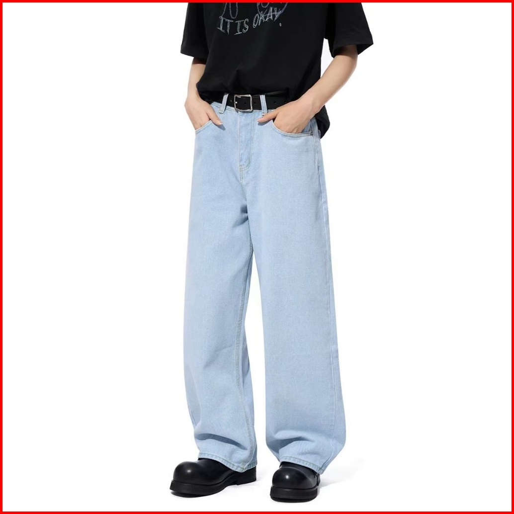 Keyboy Celana Jeans Pria Baggy Panjang Straight Kulot Celana Dewasa Cowok Gombrong Pria Biru Muda Denim Pants Korean Sty
