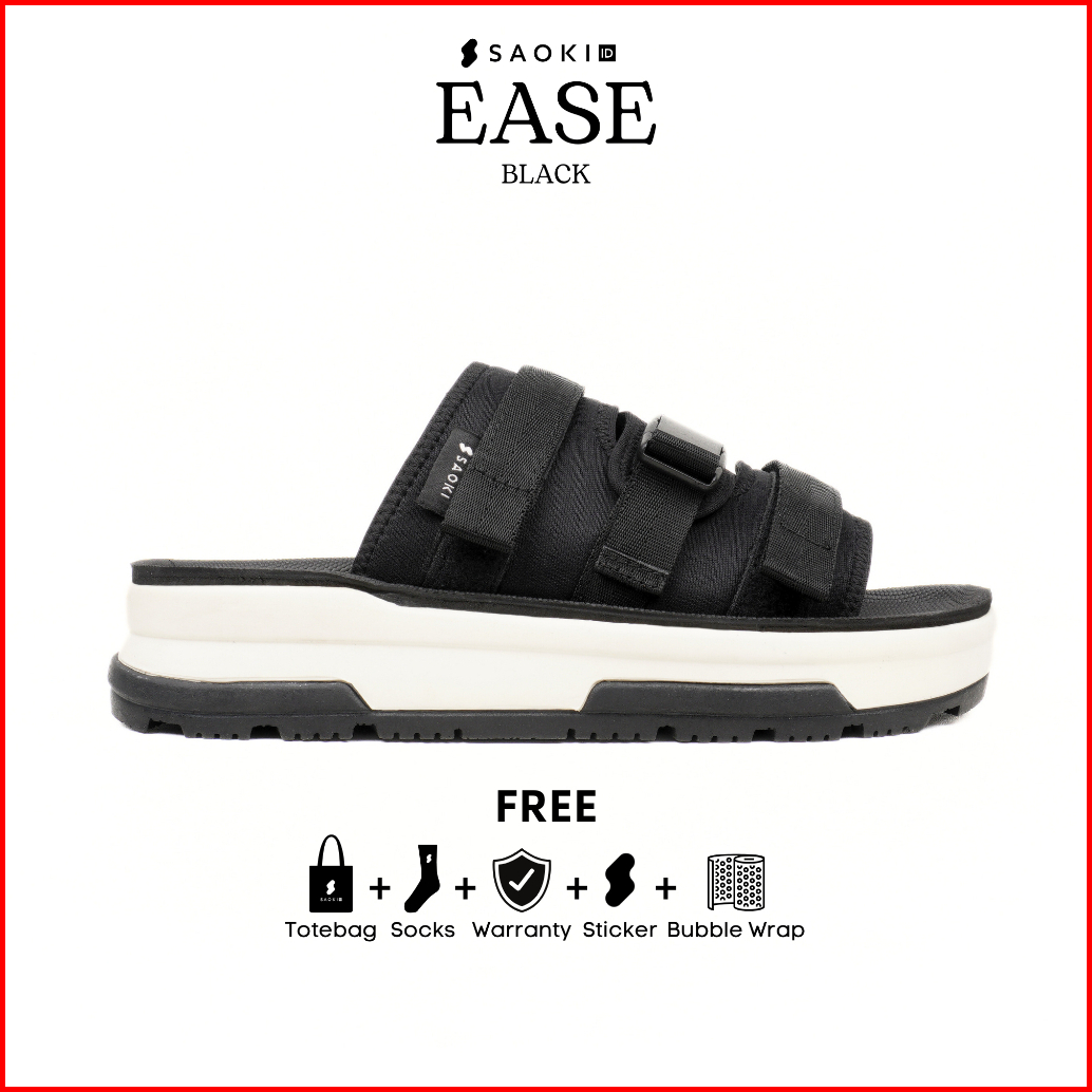 Saoki - Sandal Slop Pria Wanita Traveling Sendal Casual Slip On Slide Ease Black
