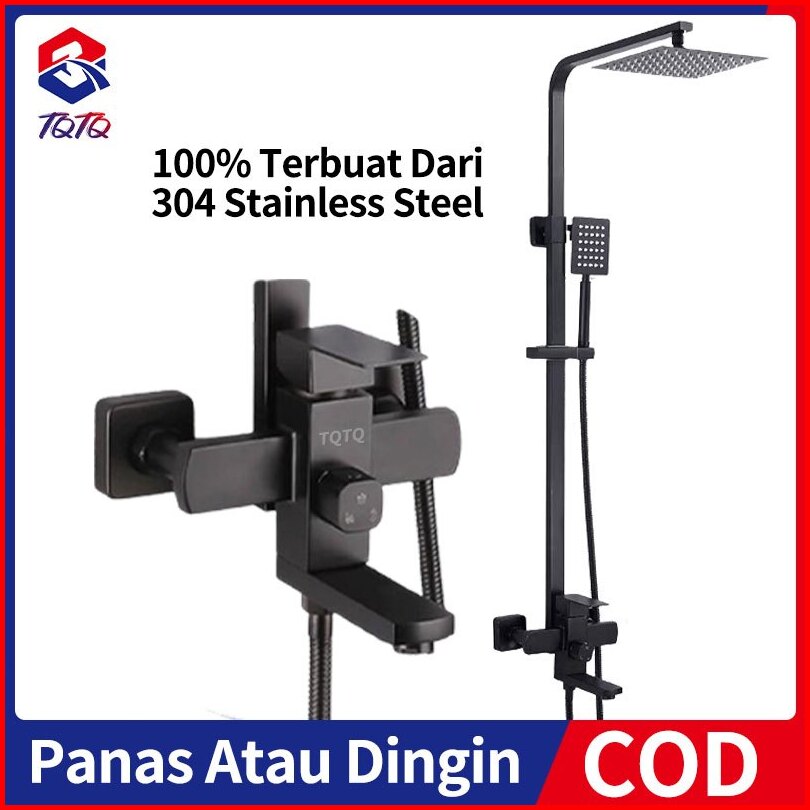 Tqtq 4 Dalam 1 Shower Kamar Mandi Full Set Panas Dingin Persegi Matte Dengan Mixer Panas Dingin