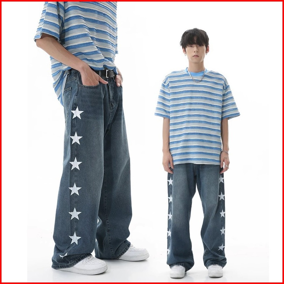 Keyboy Celana Baggy Pria Panjang Straight Kulot Jeans Celana Dewasa Cowok Casual Denim Pants Korean Style