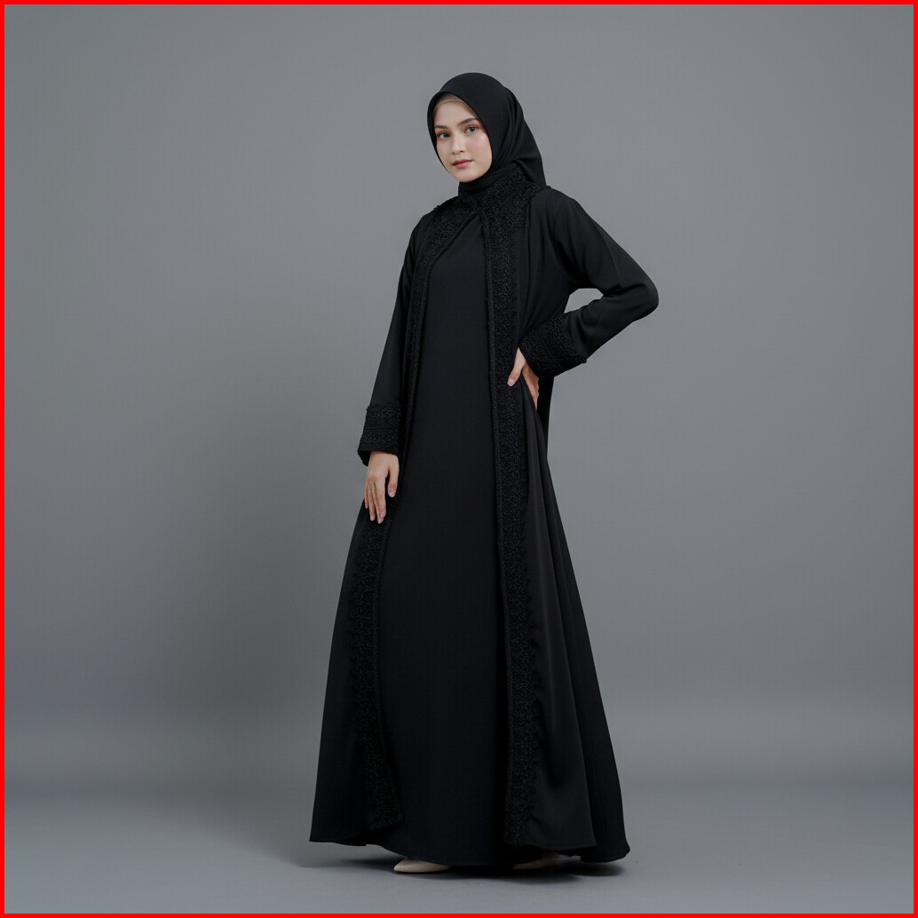 Larisa Dress Gamis Wanita Muslimah Premium Bahan Anti Uv Kombinasi Renda Mewah Elegan - Biansastyle