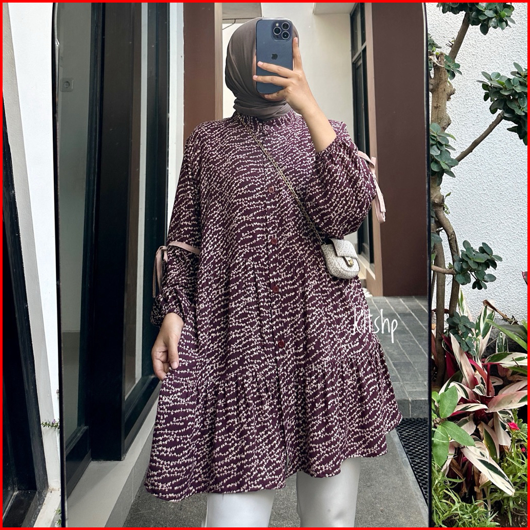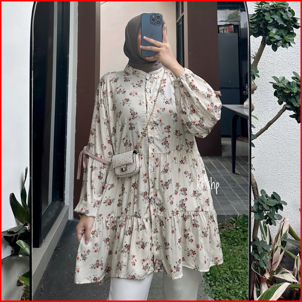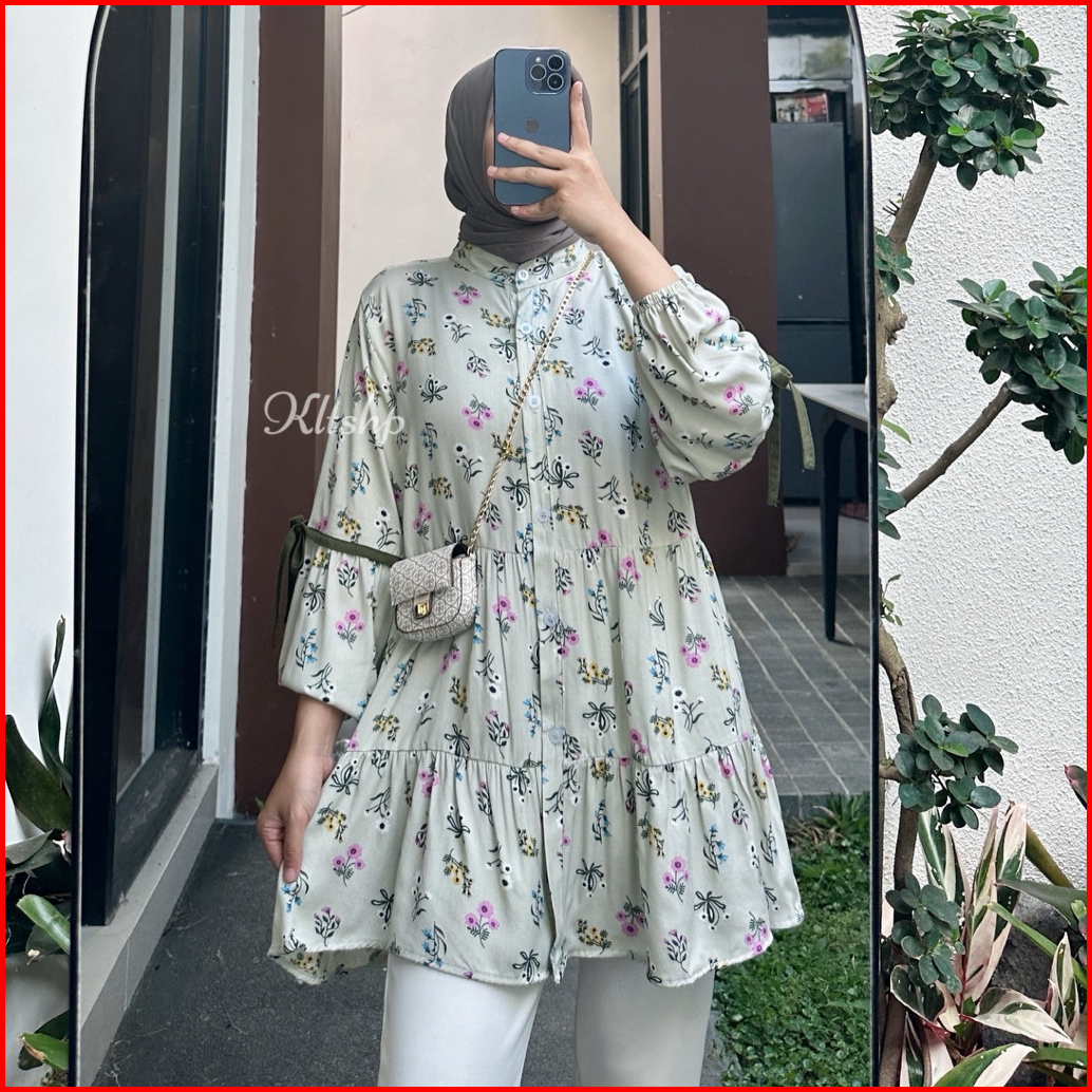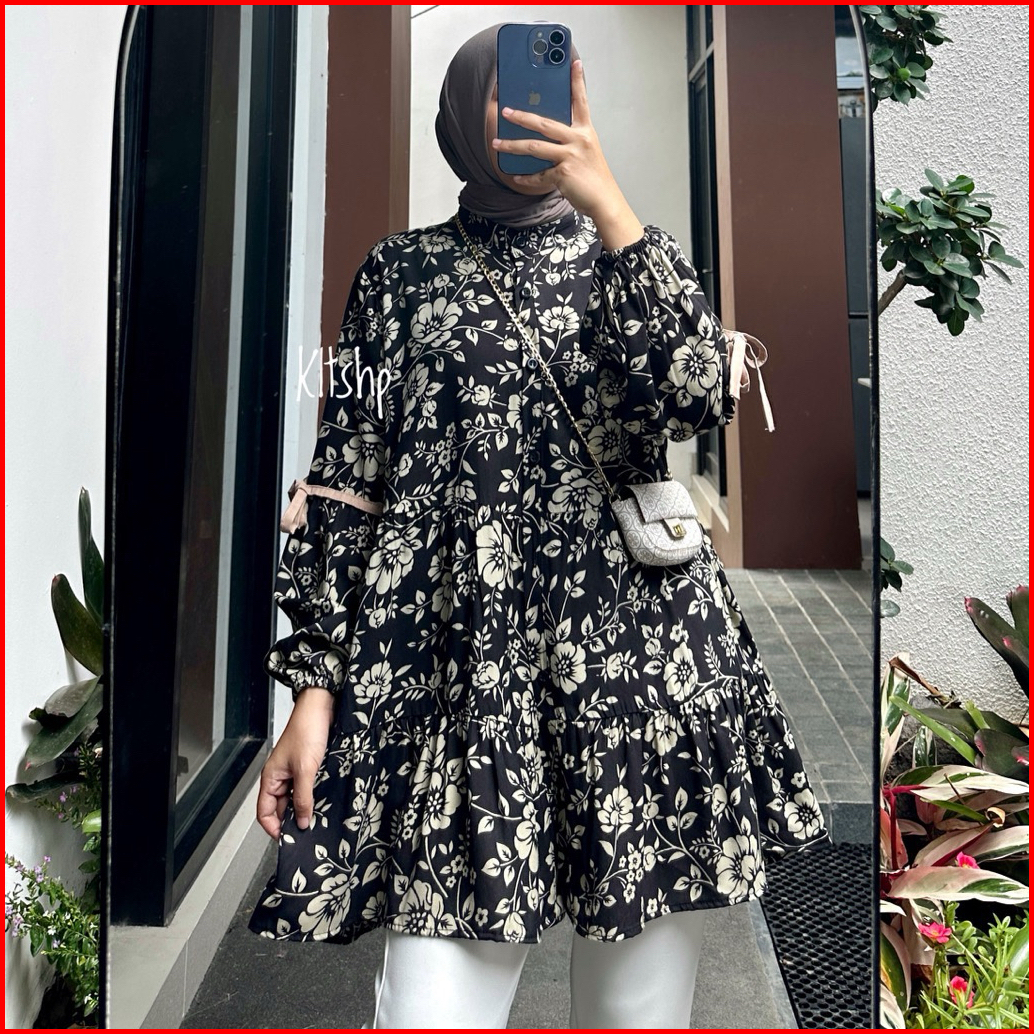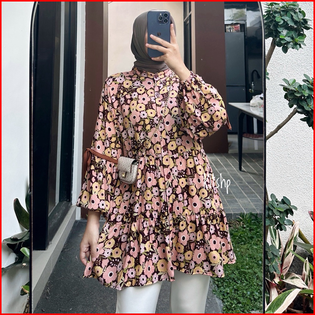 Maudy Blouse Rempel Rayon Motif Bunga Atasan Rayon Motif Bunga Busui Lengan Panjang