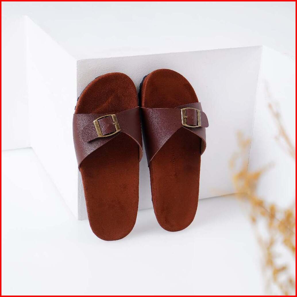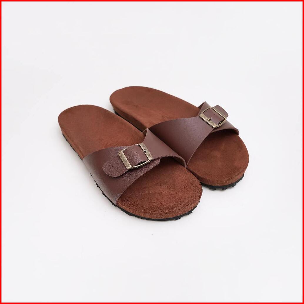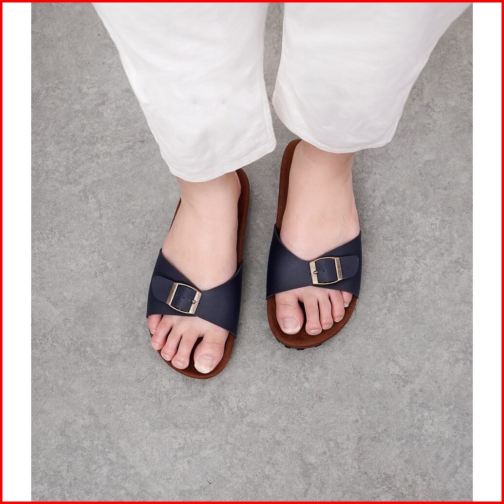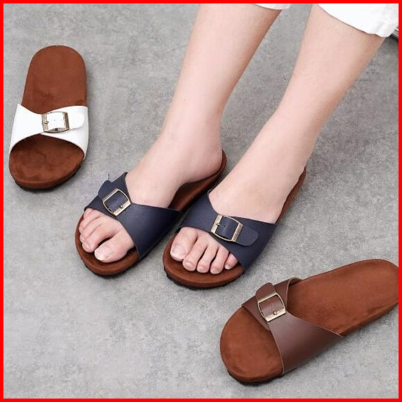 Hallyu Feet Yon-na Slide White Navy Brown Birken Wanita 1 Gesper Ban Flatbed Segala Umur