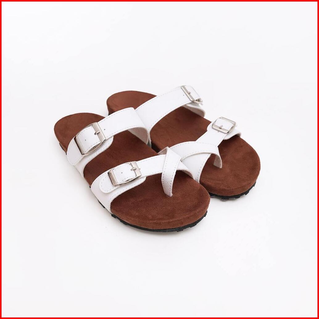 Hallyu Feet Eun-ji Slide White Brown Birken Wanita Traveling 3 Ban Sandal Cewek Hangout