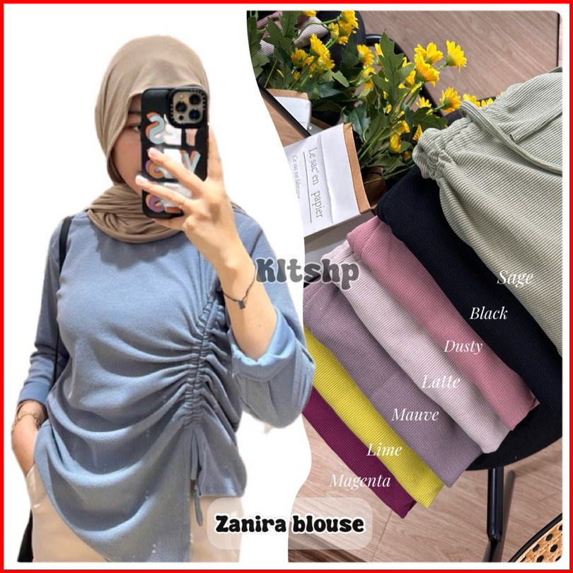 Klt - Atasan Wanita Knite Lengan Panjang Korean Style Serut Depan Blouse Knite Zanira Blouse