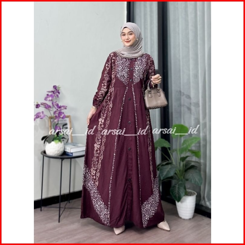 Gamis Batik Cap Malaman Gamis Busui Full Kancing Rayon Twill Tebal Arsai Id