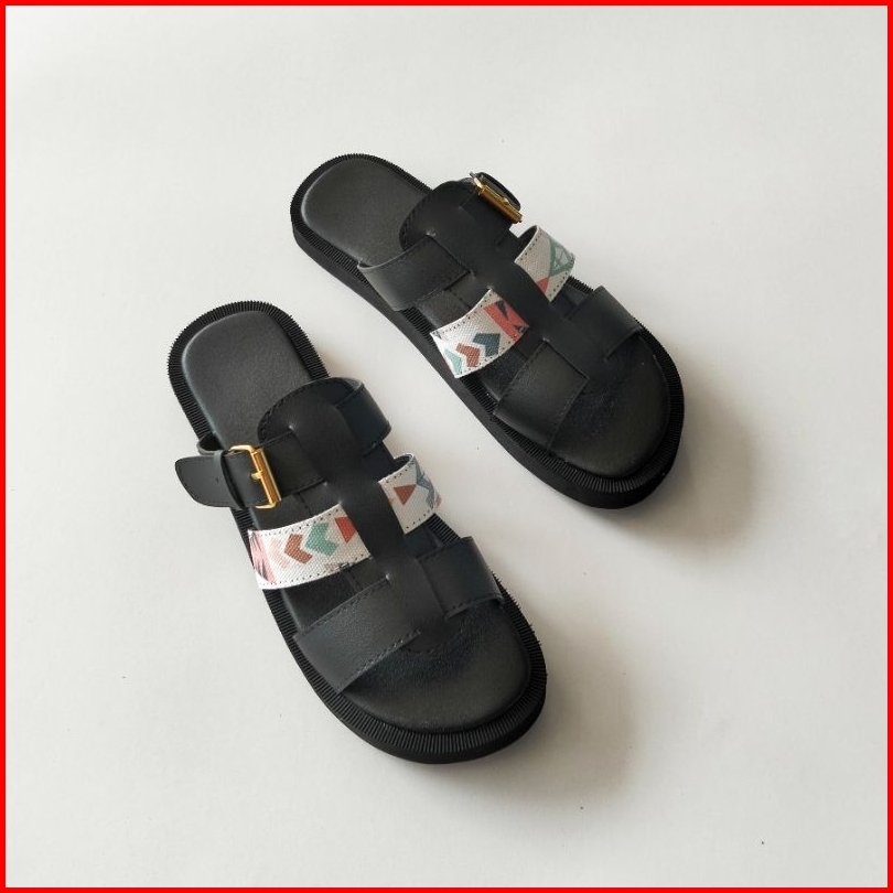 Sb Gisela Sandal Brongsong Wanita Motif Hitam Dan Putih Terbaru