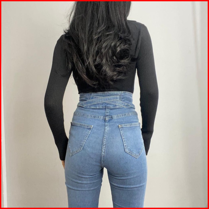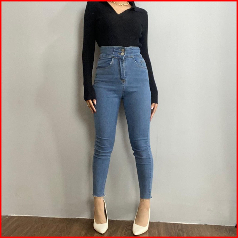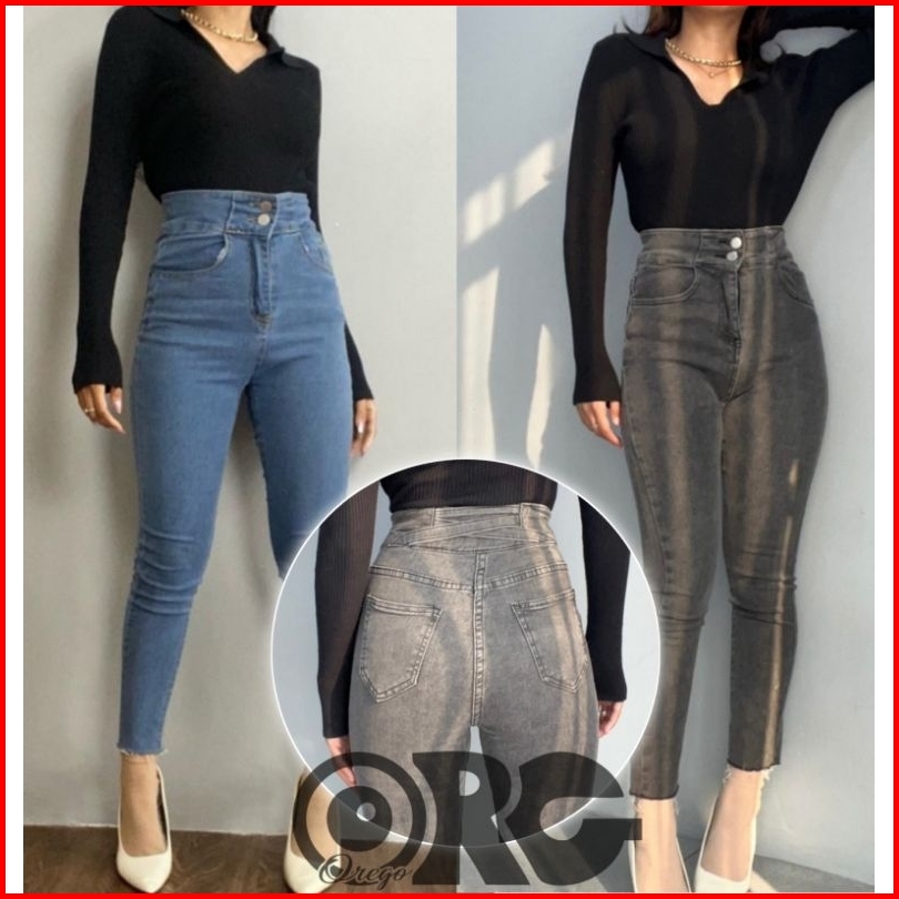 Orego Celana Jeans Skinny J32 Highwaist Strech Celana Pensil Silang Wanita Street Terbaru