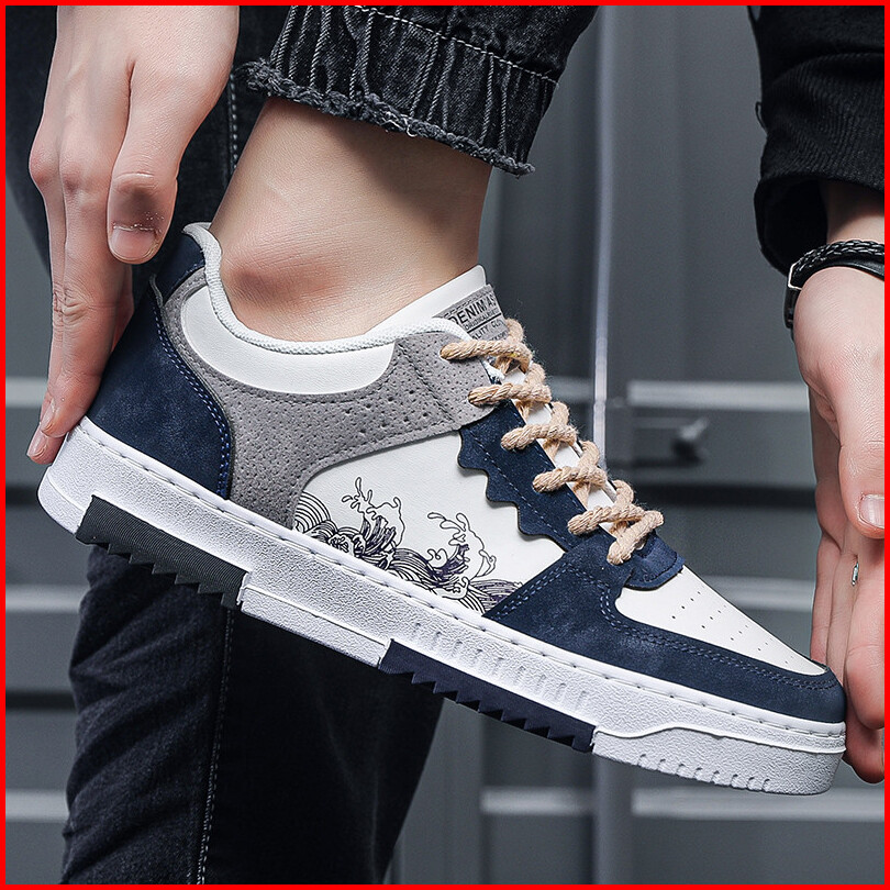 Sepatu Sneakers Pria Casual Navy Sport Shoes Bagian Atas Kulit Dan Sol Tebal
