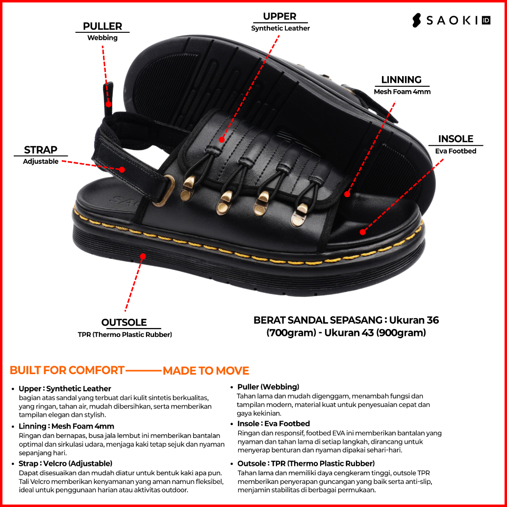 Saoki - Sandal Kulit Slip On Slop Pria Wanita Traveling Sendal Casual Slide Aria Black