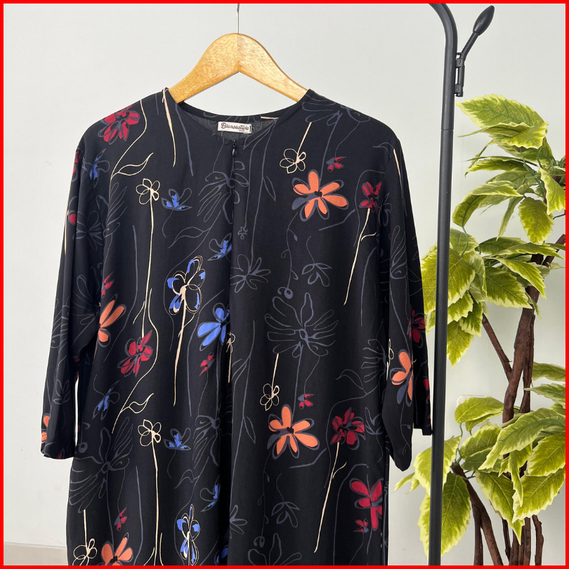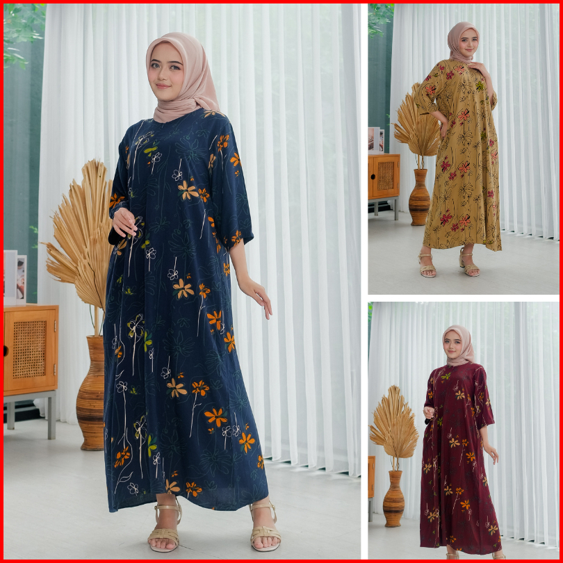 Dress Daster Jasmine Rayon Viscose Motif Bunga Kekinian Terbaru Tangan 3 4 By Biansastyle