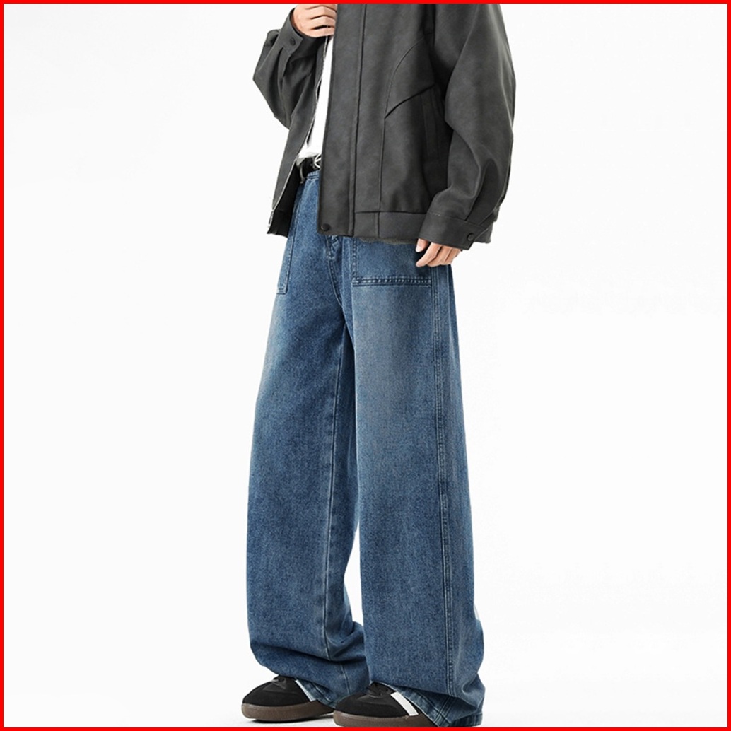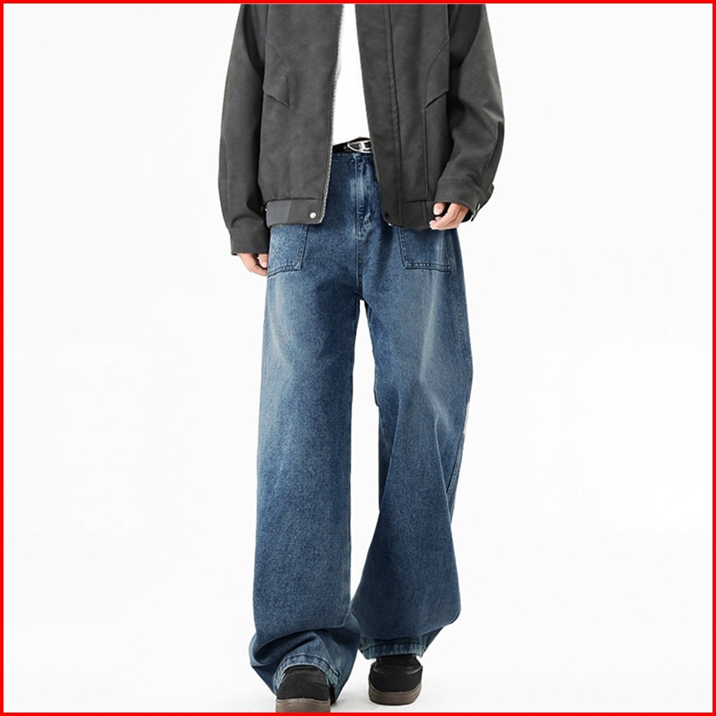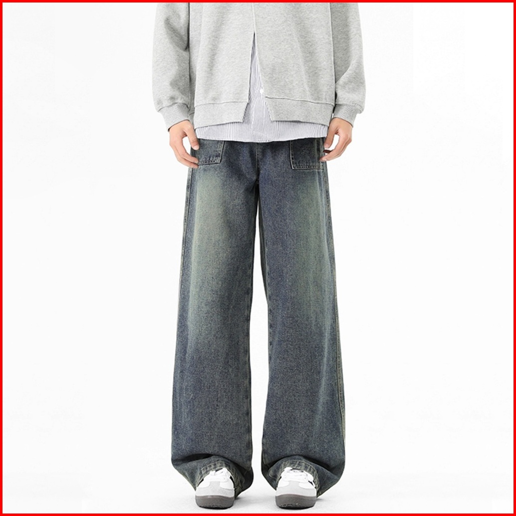 Keyboy Celana Baggy Pria Retro Straight Cut Jeans Celana Cowok Dewasa Vintage Casual Denim Pants Korean Style