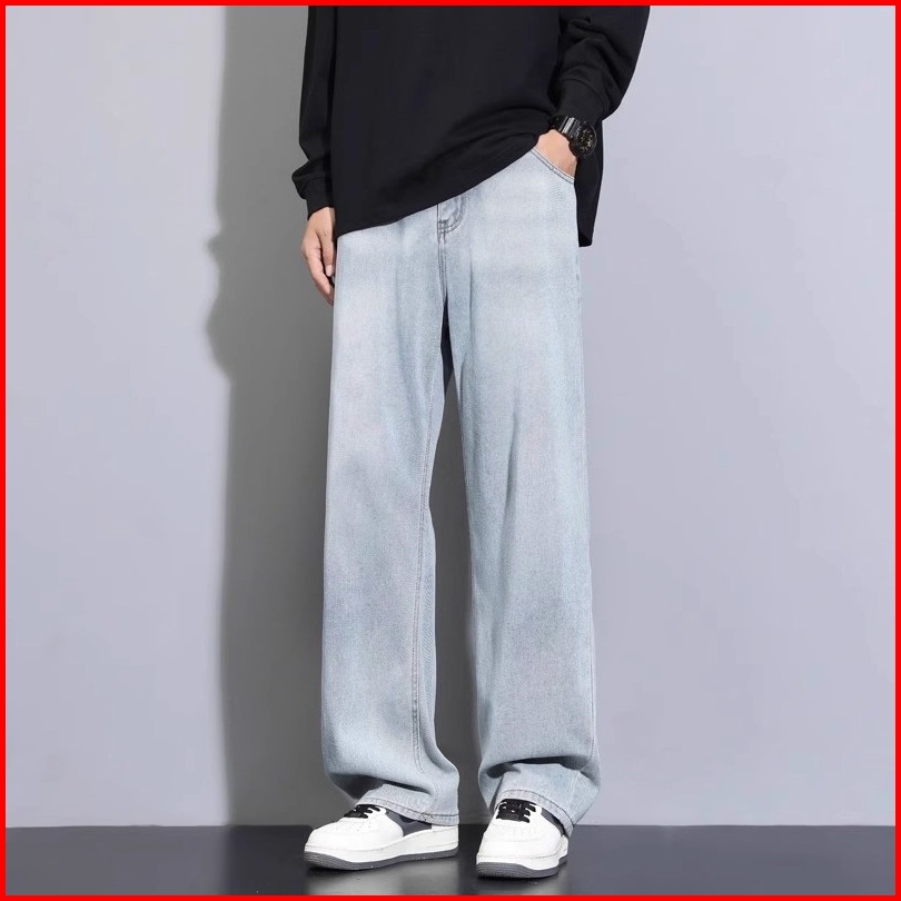 Keyboy Celana Jeans Pria Panjang Baggy Kulot Celana Straight Longgar Pria Gombrong Oversize Blue Denim Pants Korean Styl