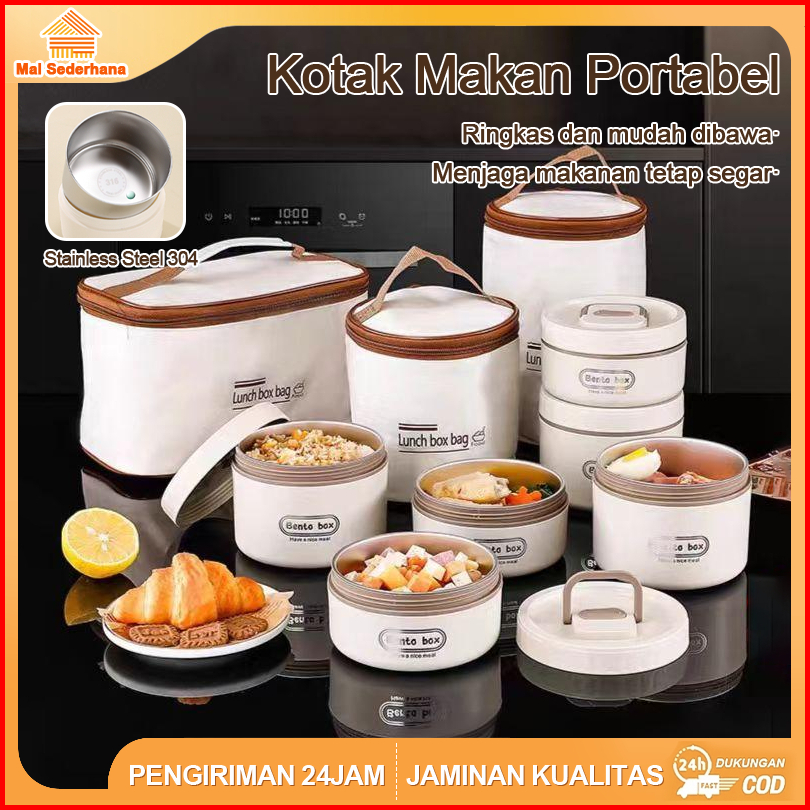 Mal Sederhana Kotak Makan Siang Bulat Berinsulasi Stainless Steel - Kotak Makan Siang Anti Bocor - Set Kotak Makan Siang