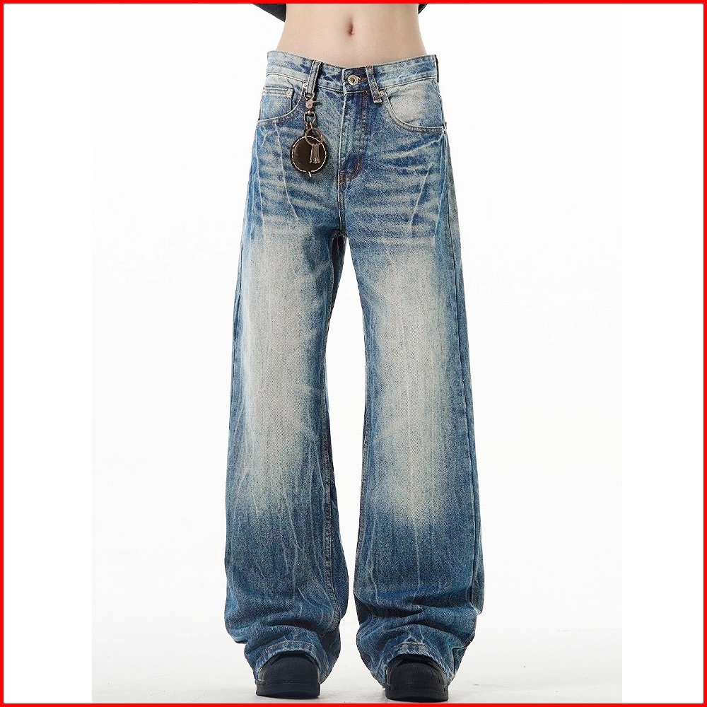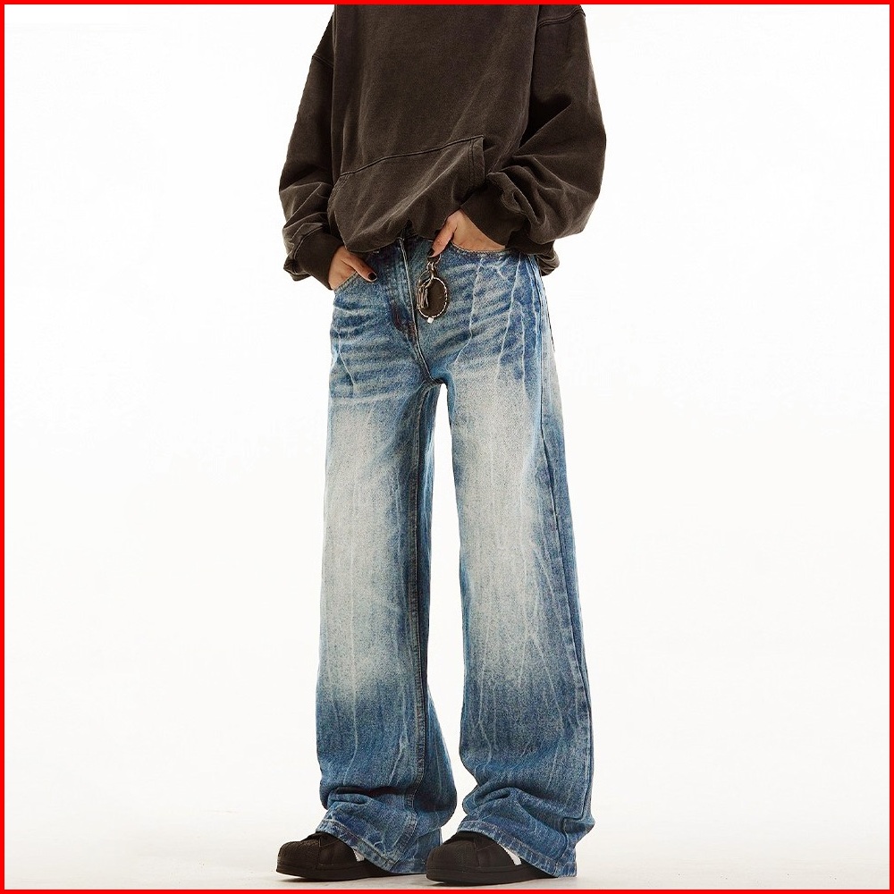Keyboy Celana Panjang Pria Baggy Retro Biru Jeans Kulot Celana Straight Cut Kulot Casual Denim Pants Korean Style
