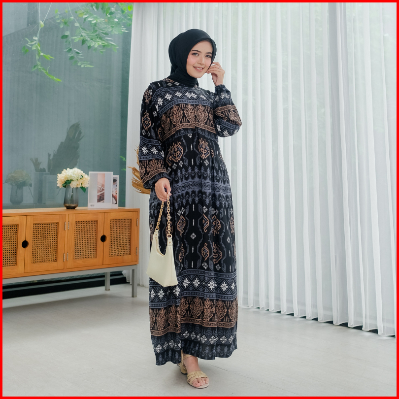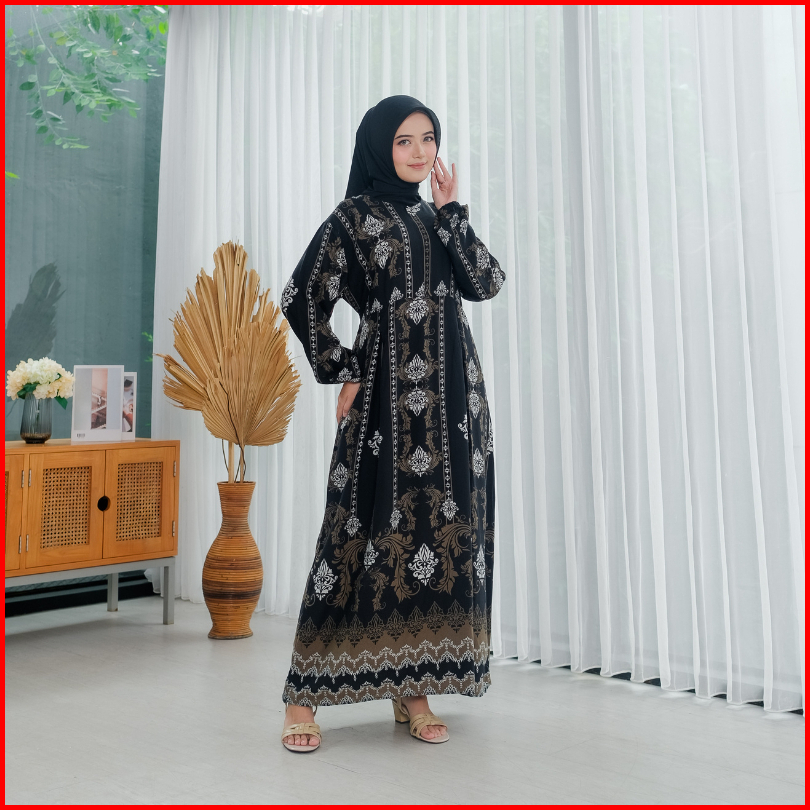 Baju Gamis Hitam Terbaru Wanita Kekinian Bahan Rayon Premium Motif Batik By Biansastyle