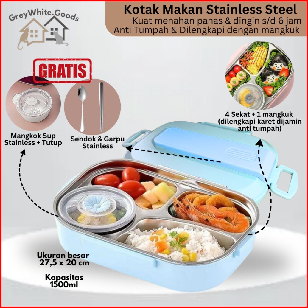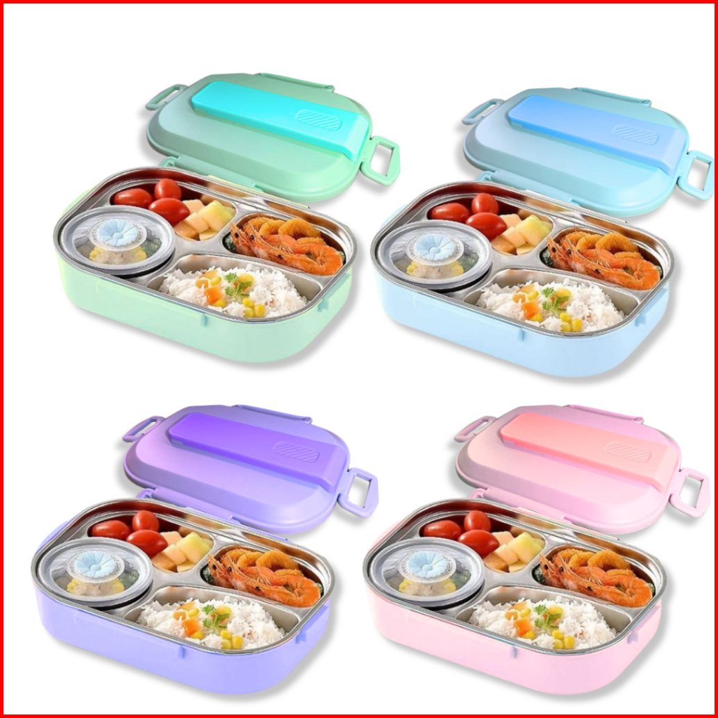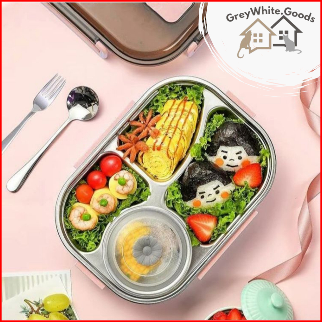 Kotak Makan Set Tas Lunch Box Stainless Steel 304 Premium 4 Sekat Bpa Free Anti Tumpah Tahan Panas