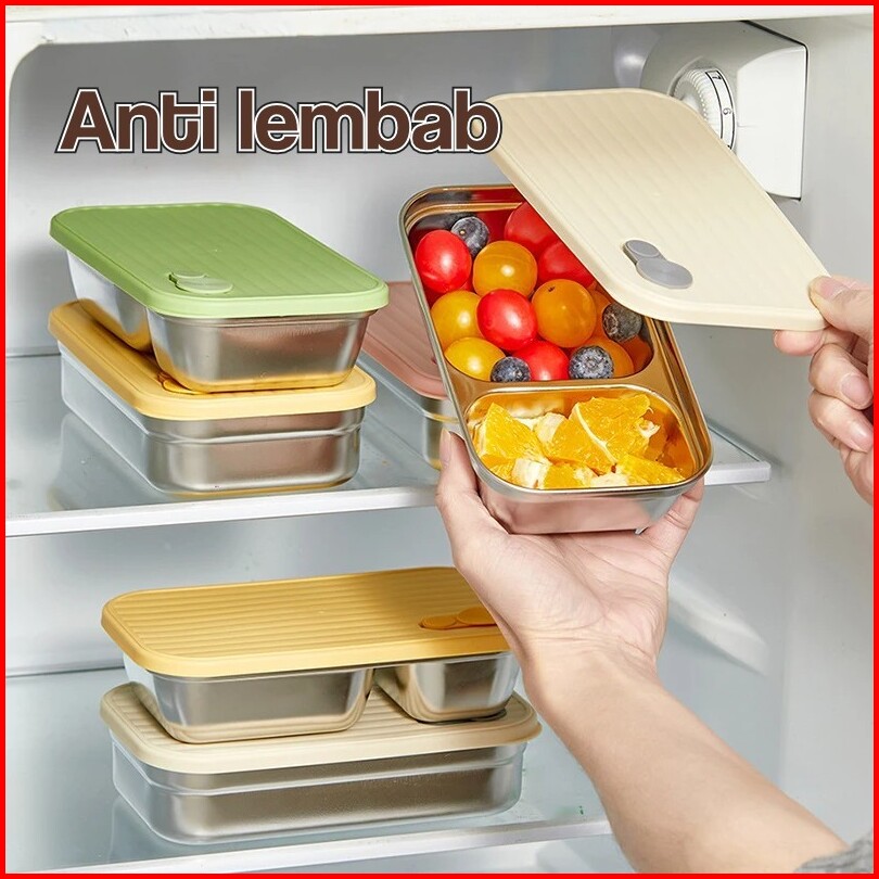 Dejavu Tempat Bekal Sekat Makanan Lunch Box Stainless Kotak Makan Grid Bento Anti Tumpah Hmb147