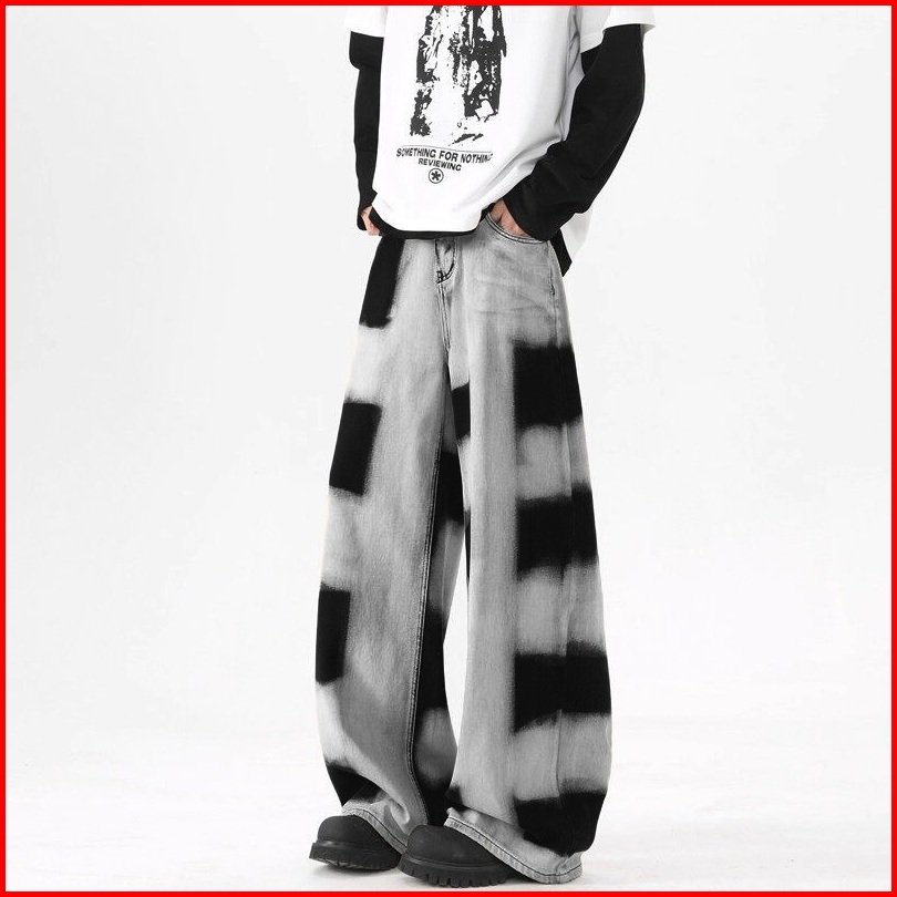 Keyboy Celana Panjang Pria Korean Baggy Jeans Pria Abu Hitam Trendi Wide Leg Causal Denim Pants