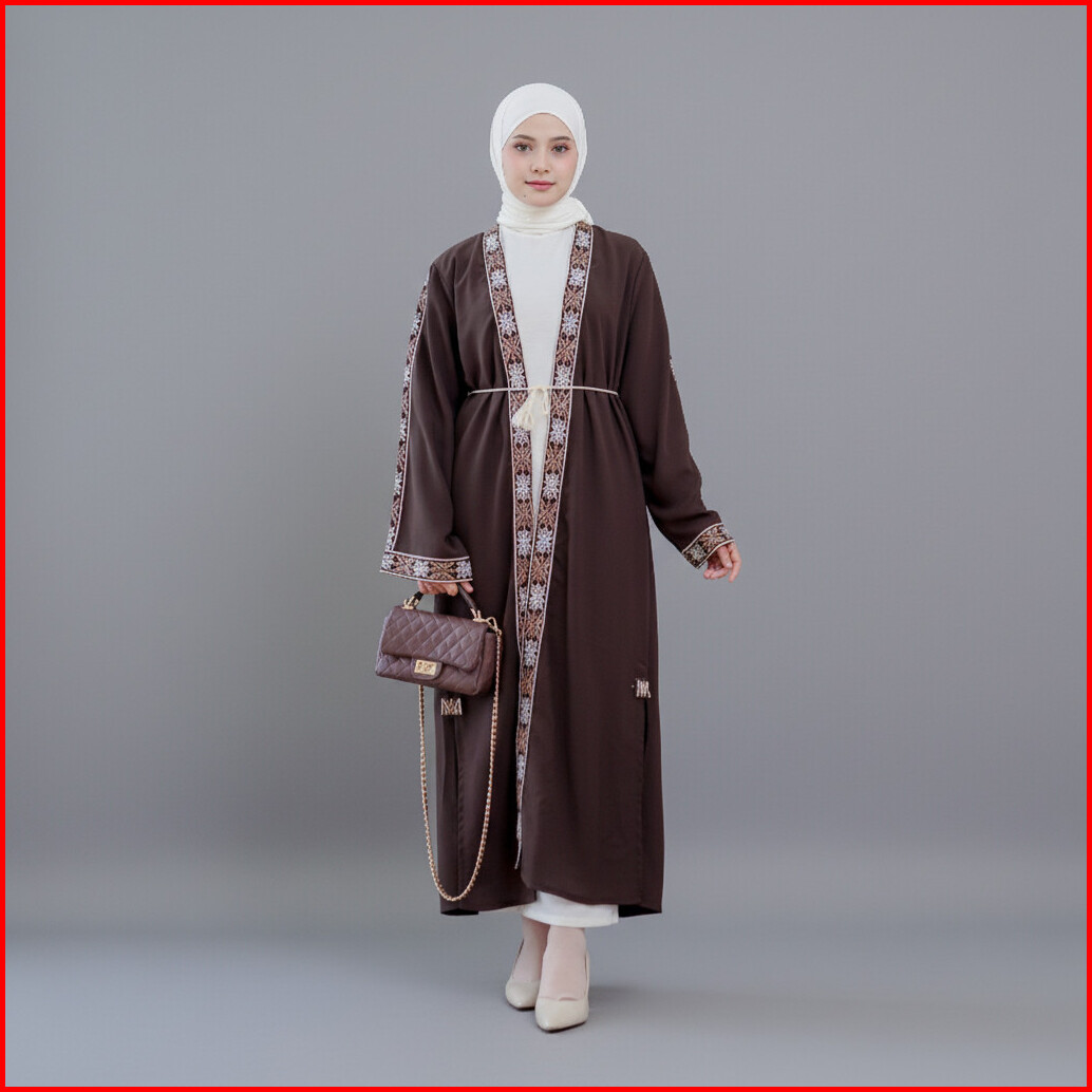 Abaya Bordir Outer Anti Uv Gamis Wanita Lengan Panjang Mewah Tali Terpisah Faheera - Biansastyle