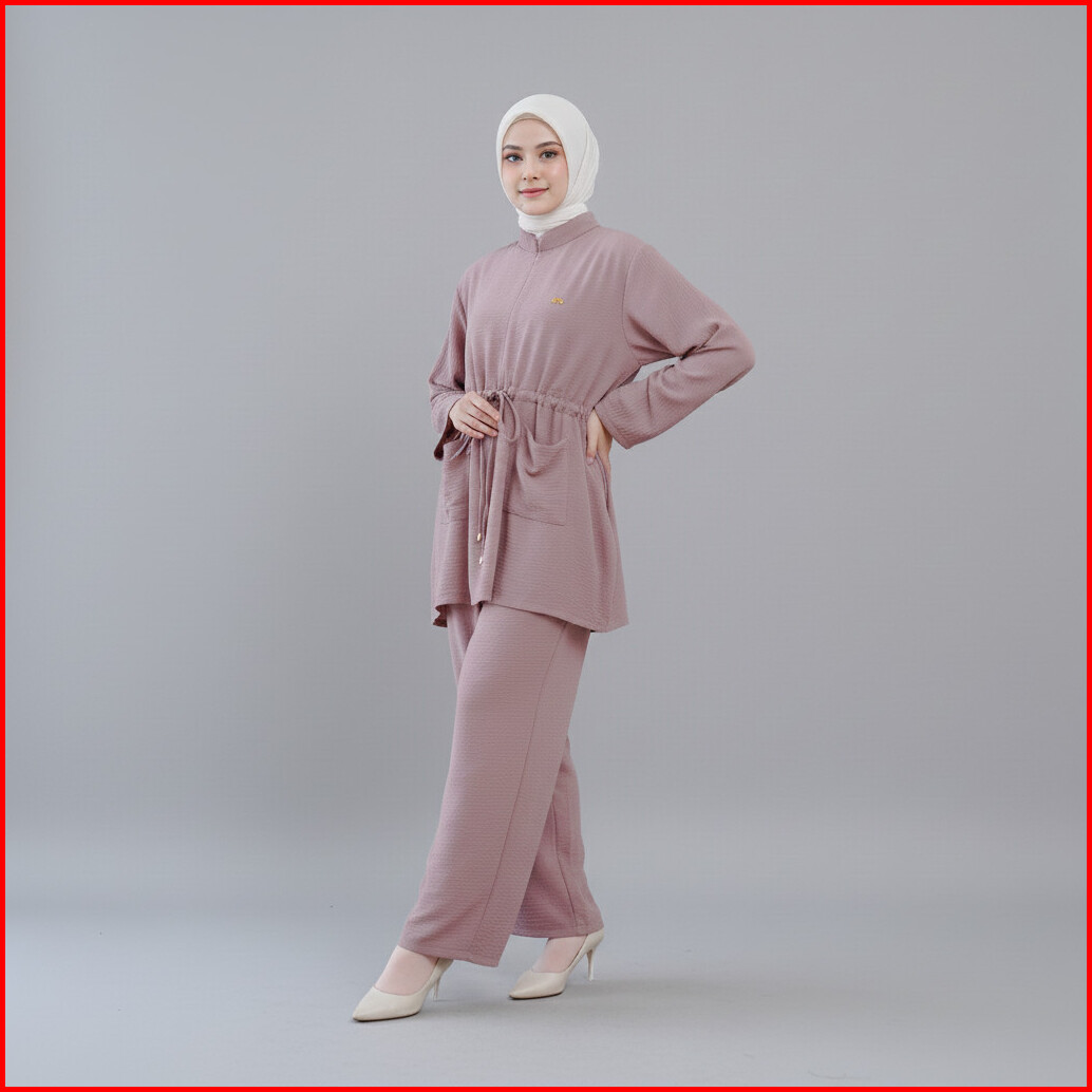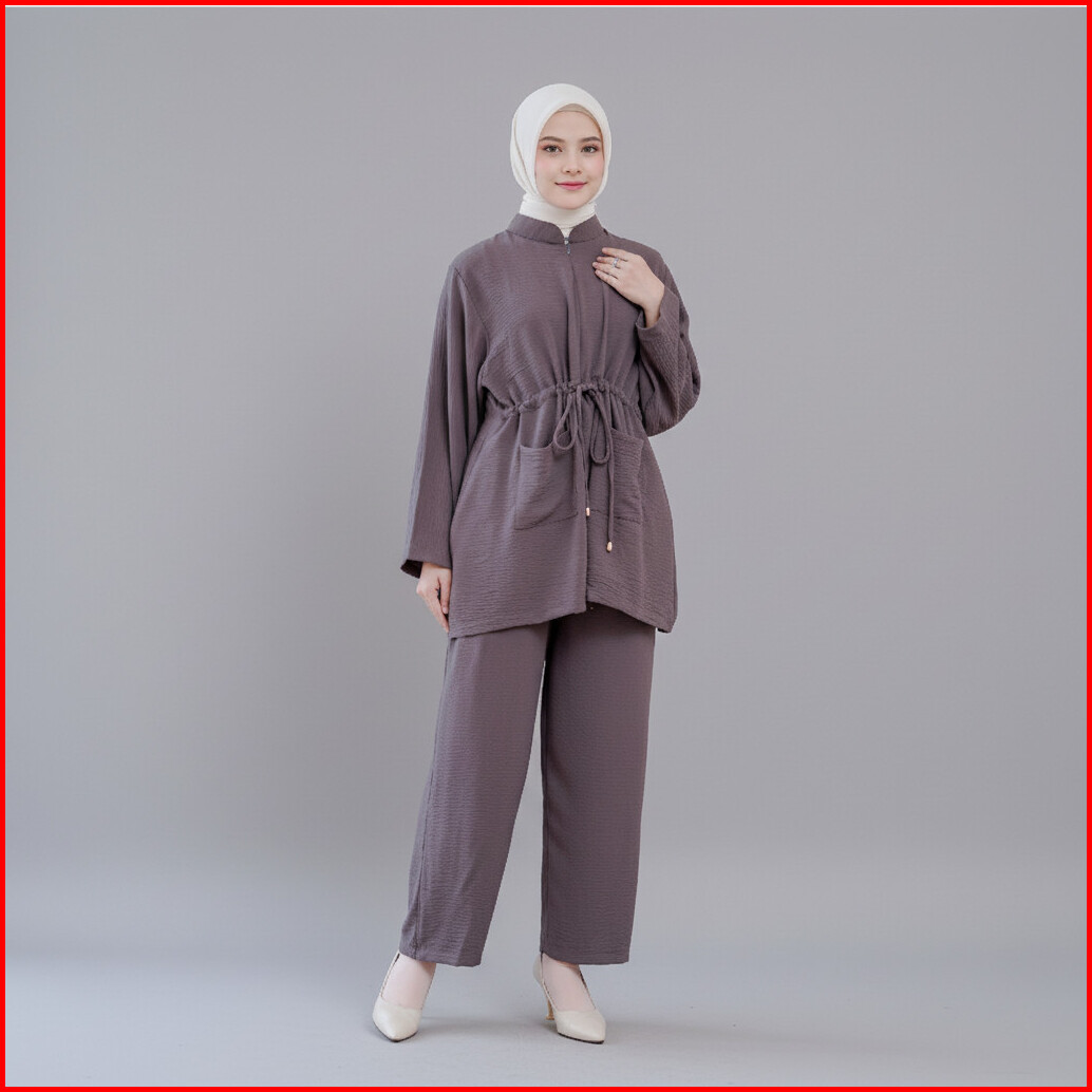 Setelan Tunik Dan Celana Wanita Muslim One Set Airflow Tali Serut Husniya - Biansastyle