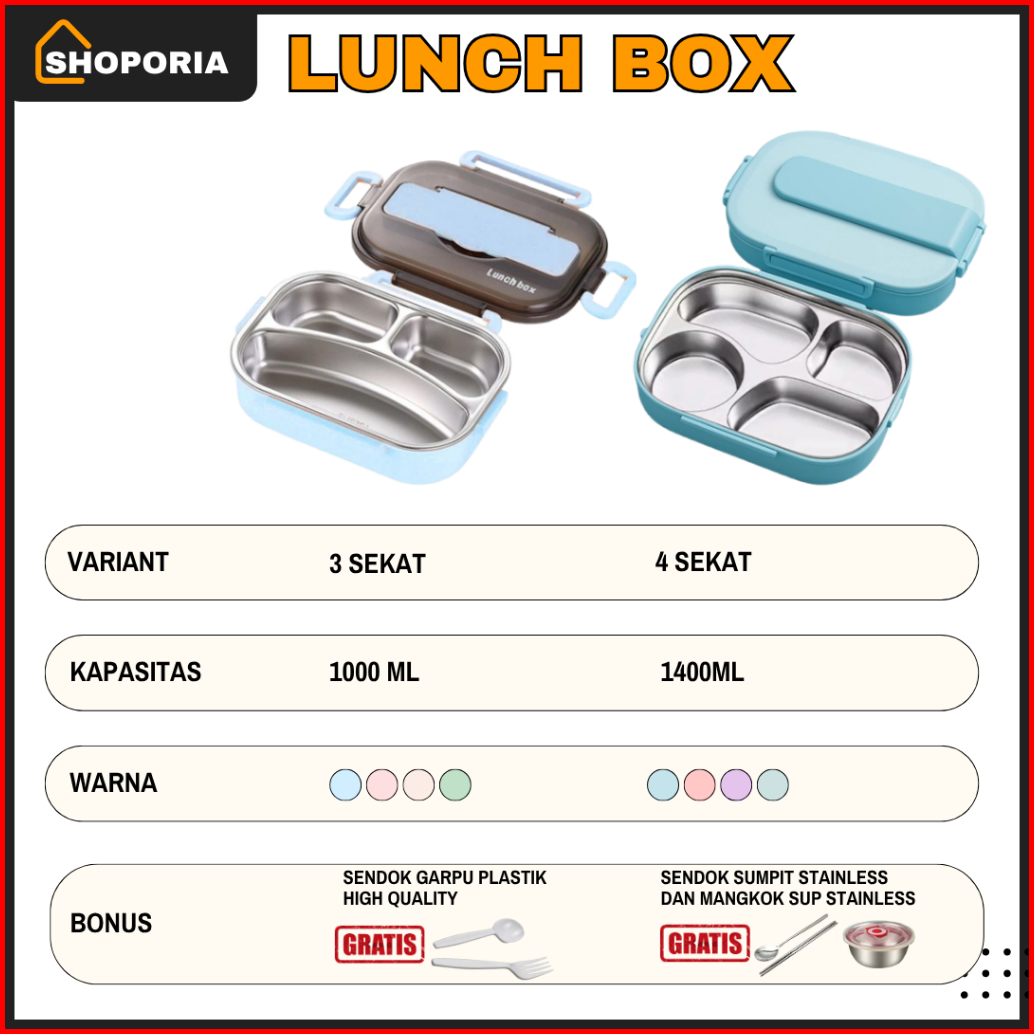 Kotak Makan Lunch Box Kotak Bekal Stainless 3 Sekat Food Grade