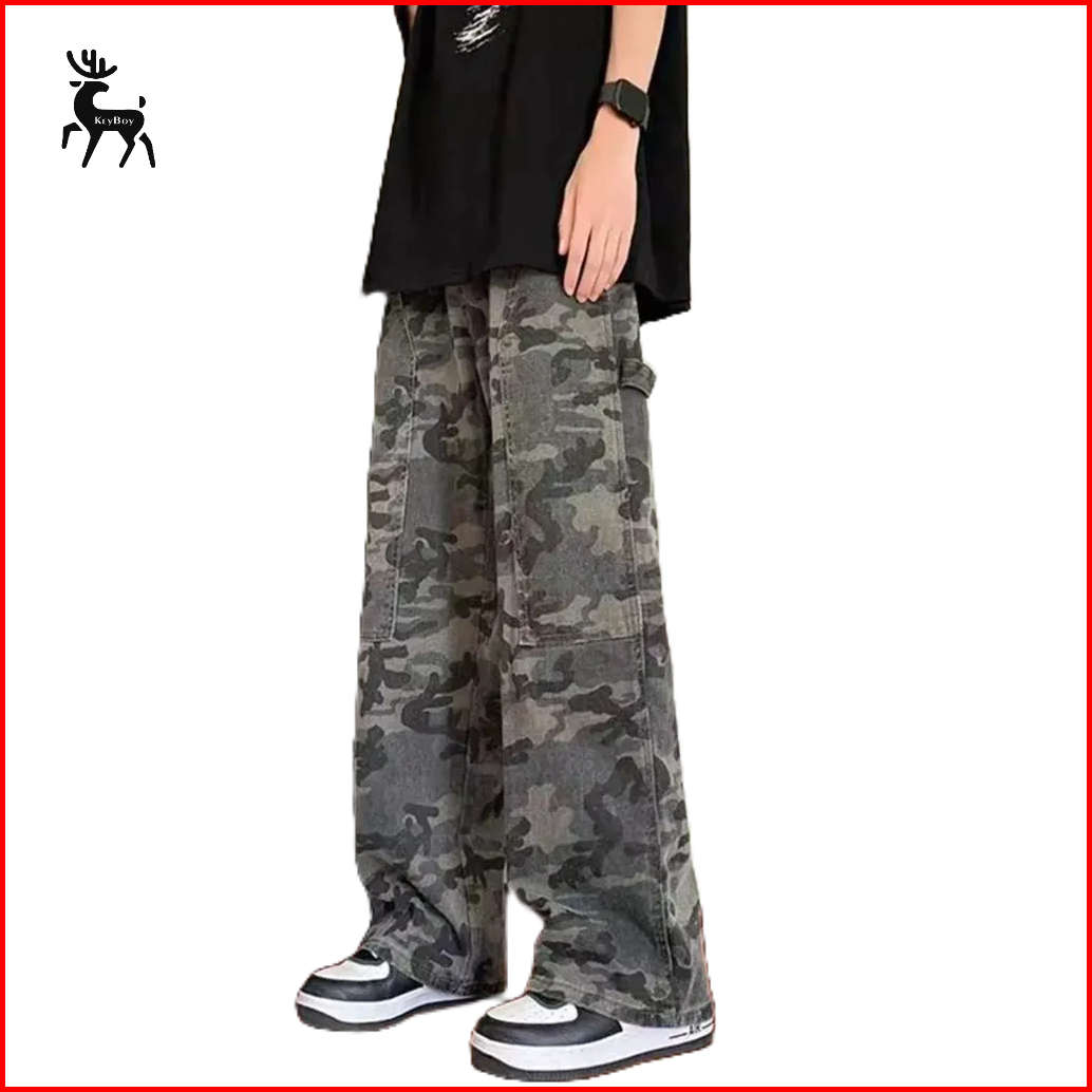 Keyboy Celana Panjang Pria Cargo Baggy Straight Celana Dewasa Cowok Longgar Kulot Korean Style
