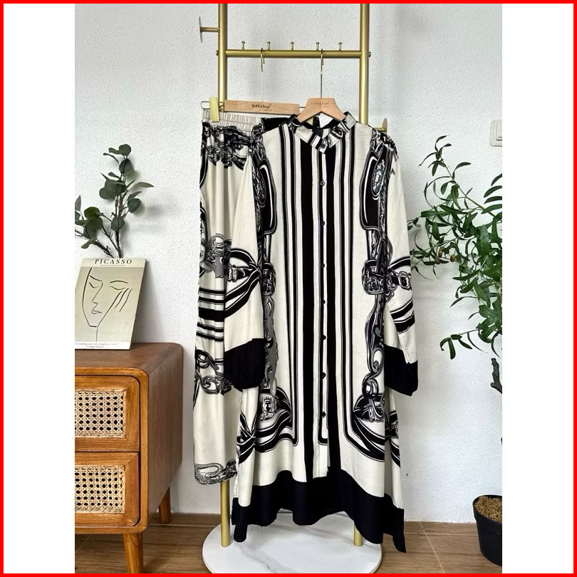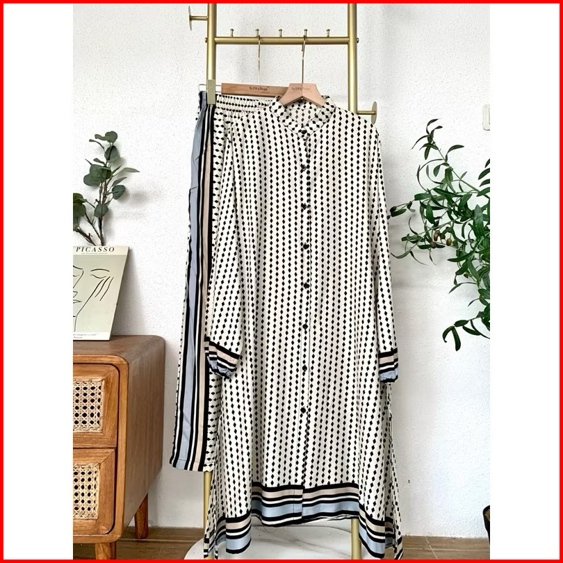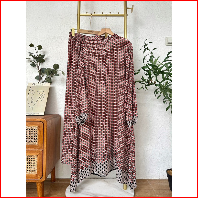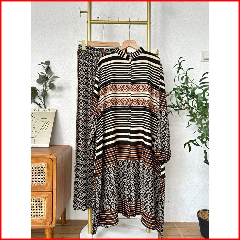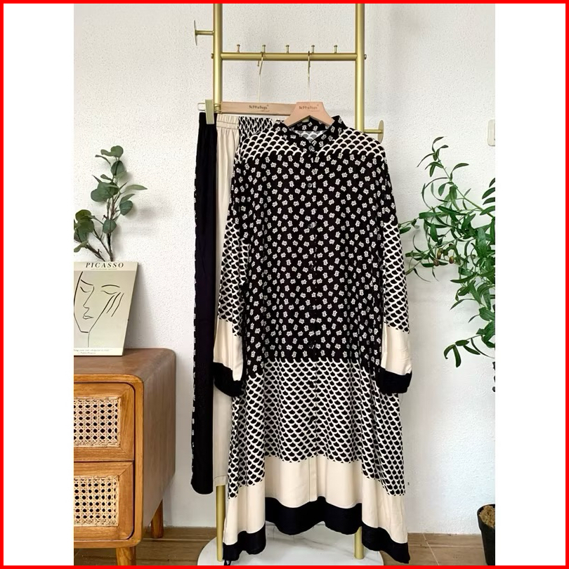Klt - Dress Gamis Wanita Kekinian Soraya Set Tunik Celana Motif Rayon