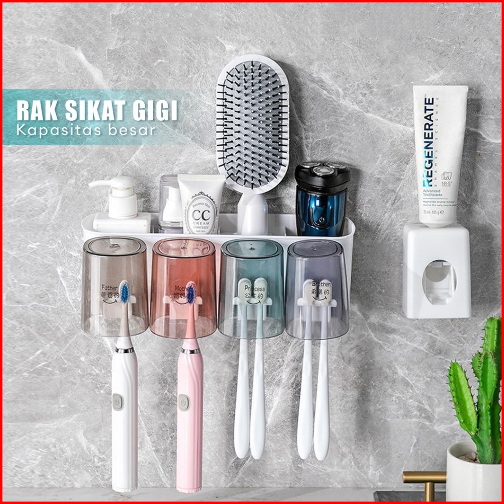 Lazy Bear Rak Sikat Gigi Tempel Dinding Gratis Gelas Kumur D72-d74 Tooth Brush Rack Anti Bor