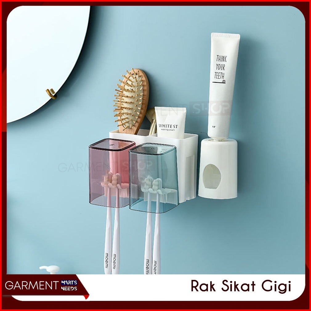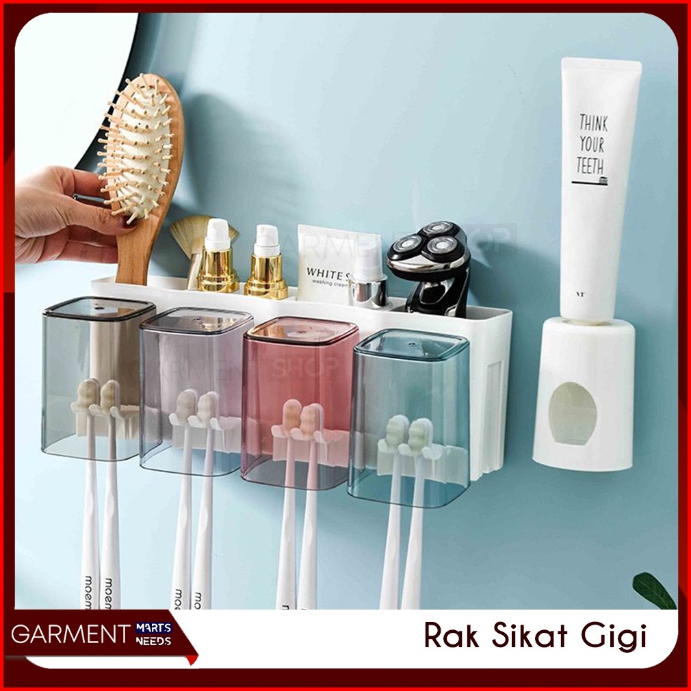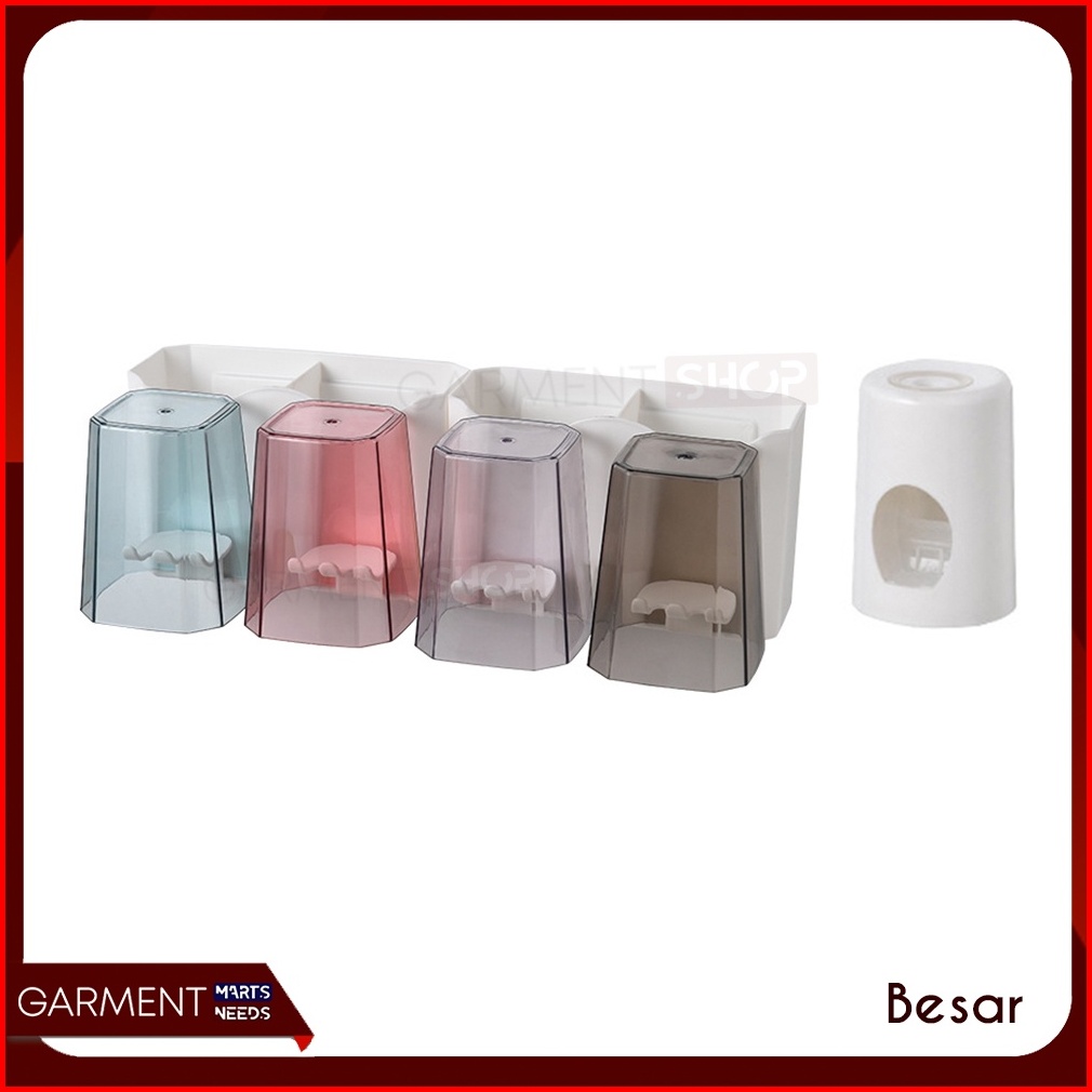 Dispenser Odol Rak Sikat Gigi Kamar Mandi Tempat Sabun Gantung Organizer Bagus Putih 4 Gelas 2 Orang