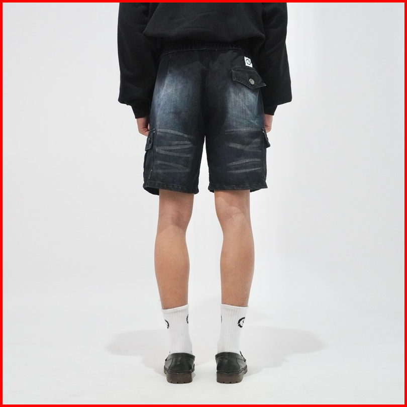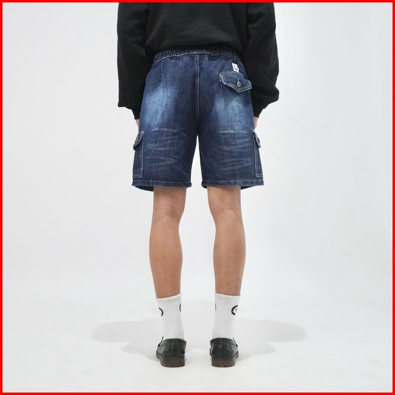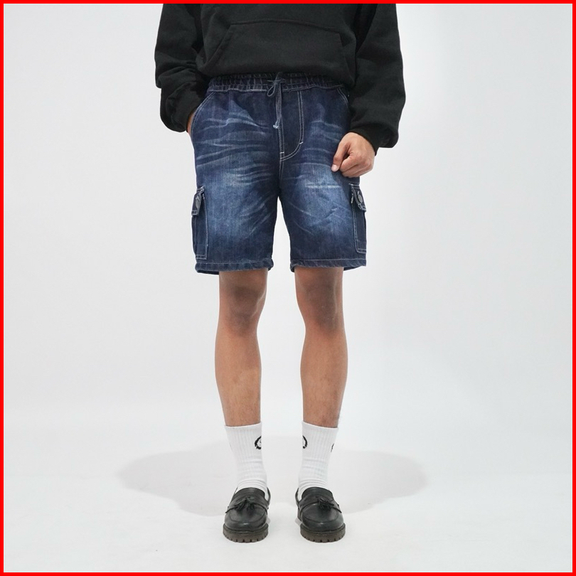 Selfless - Boardshort Cargo Jeans - Celana Pendek Jeans Denim Whisker Washed Cargo Pria