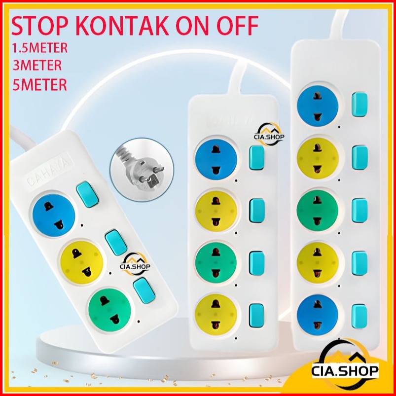 Stop Kontak Kabel Saklar 3 4 5 Lubang 1.5 3 5m Stop Kontak Gepeng Sni Cahaya Sc-793 4 5