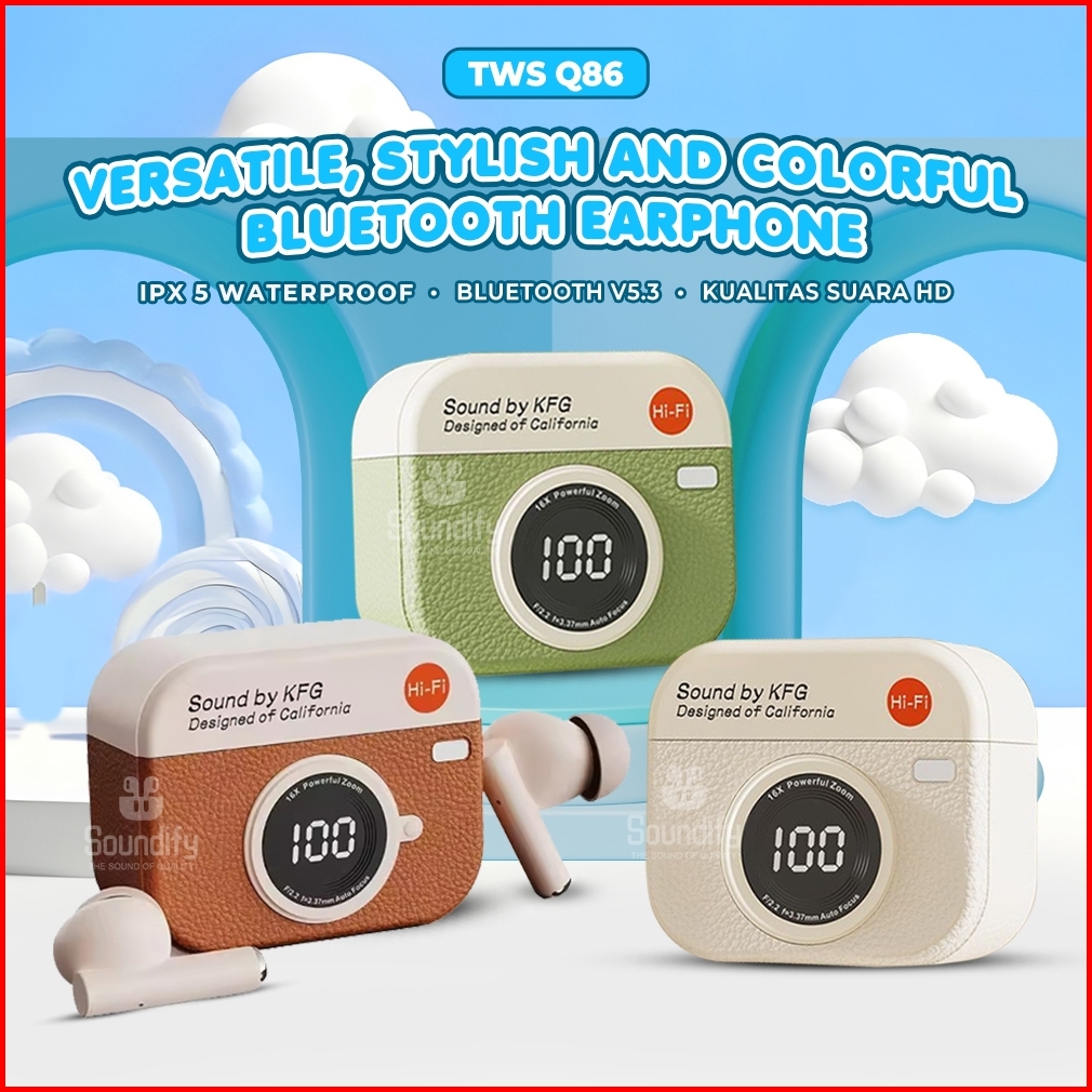 Soundify Tws Camera Retro Extra Bass Q86 Headset Bluetooth Mini Waterproof Earphone True Wireless