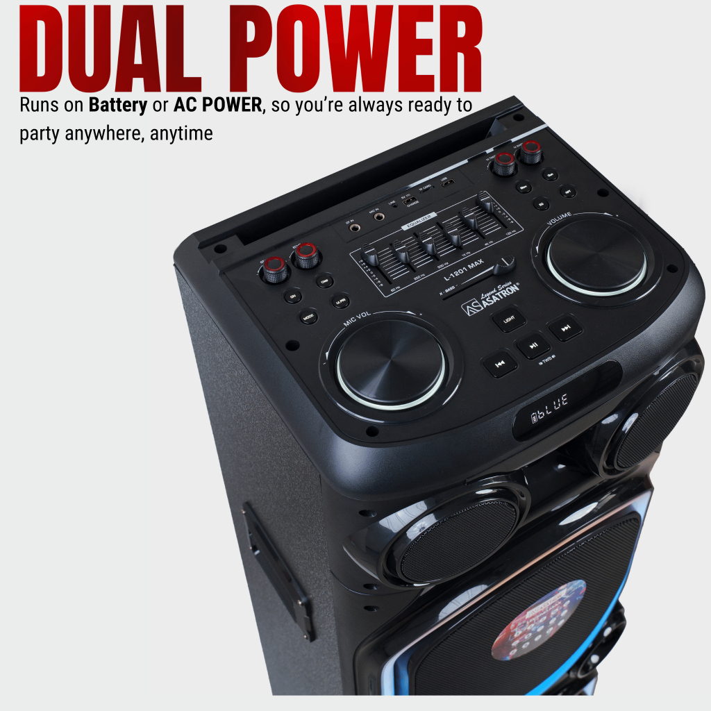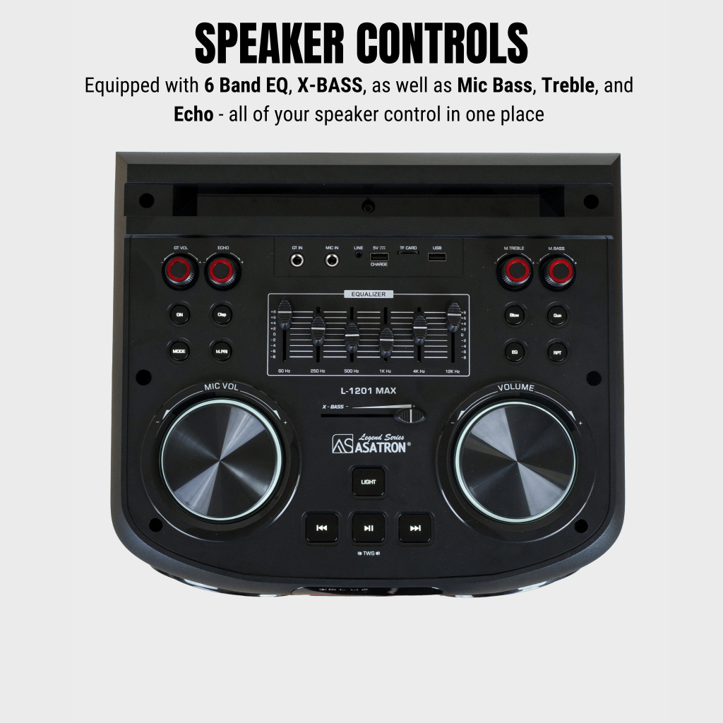 Asatron Legend L-1201 MAX Bluetooth Tower Party Speaker, Deep Bass, 2 UHF Wireless Mics