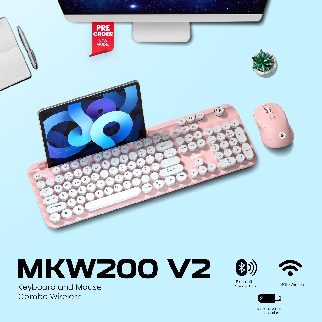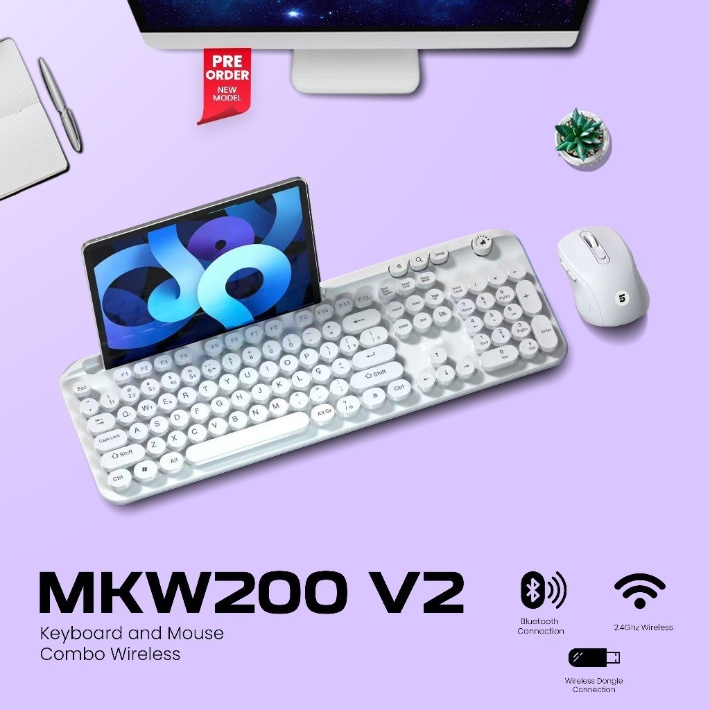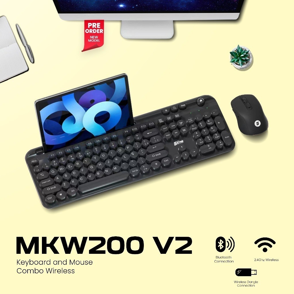 5Star MKW200 V2 Set Keyboard And Mouse 2 in 1 Wireless 2.4Ghz And Bluetooth Rechargable Type-C for Android, iOS, PC, Laptop