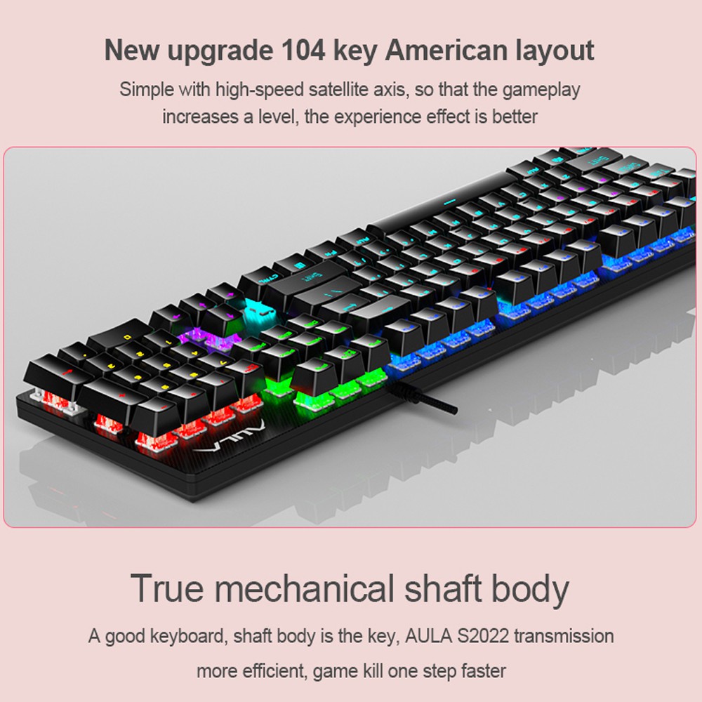 Keyboard Gaming Mechanical AULA S-2022 GREEN–RGB Display Rainbow- Macro Software - KRGD Blue Switch