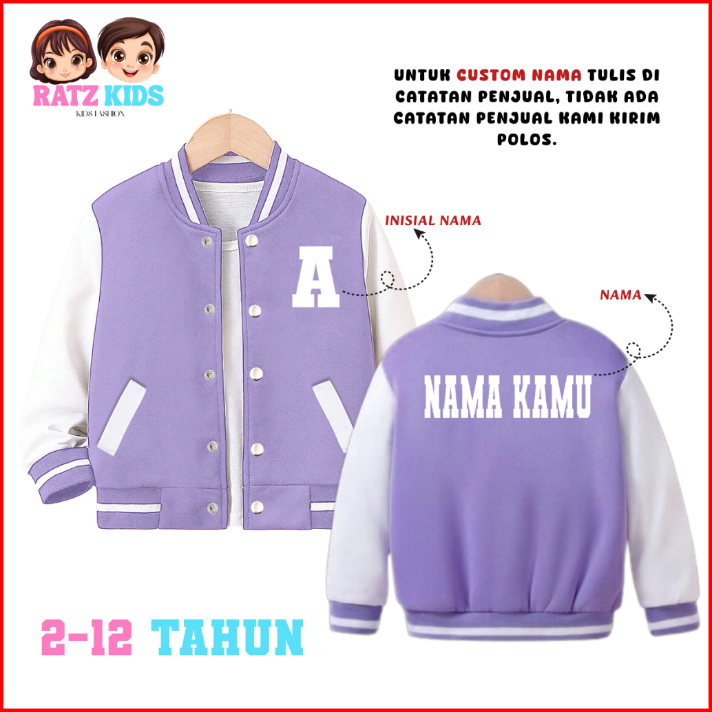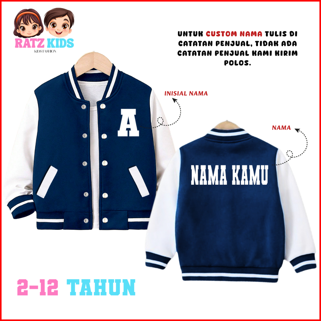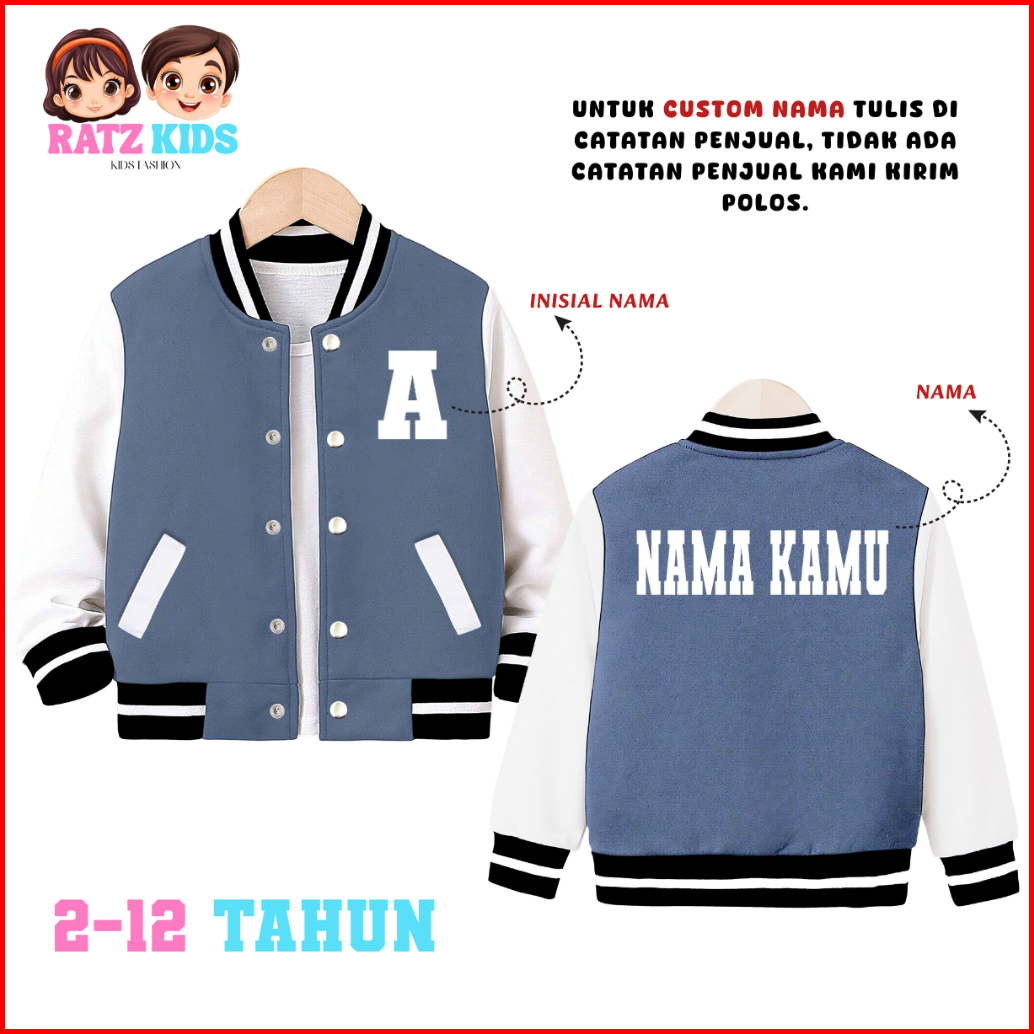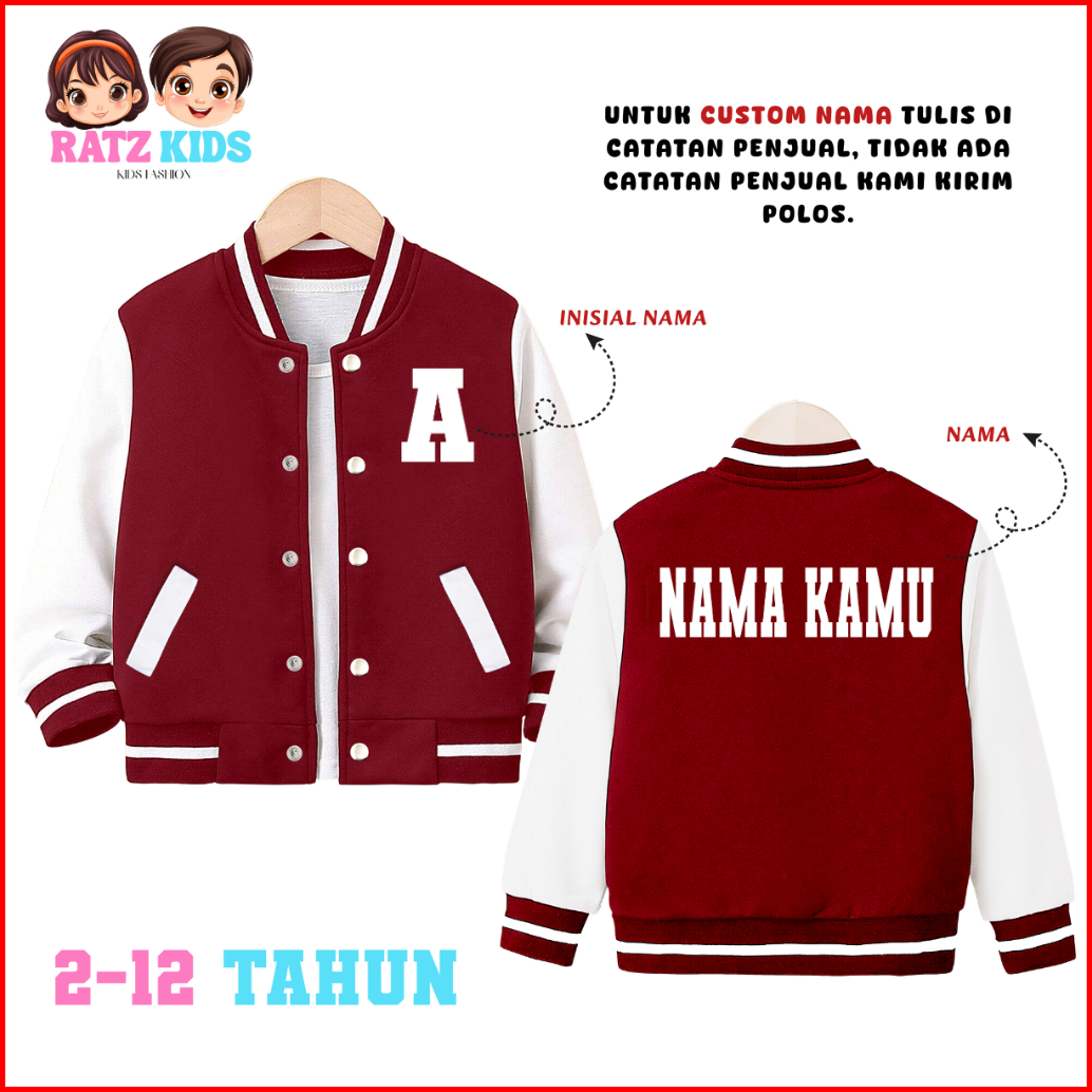 Ratz Kids - Jaket Baseball Varsity Anak Custom Nama Untuk Usia 2-12 Tahun