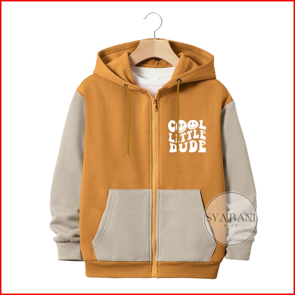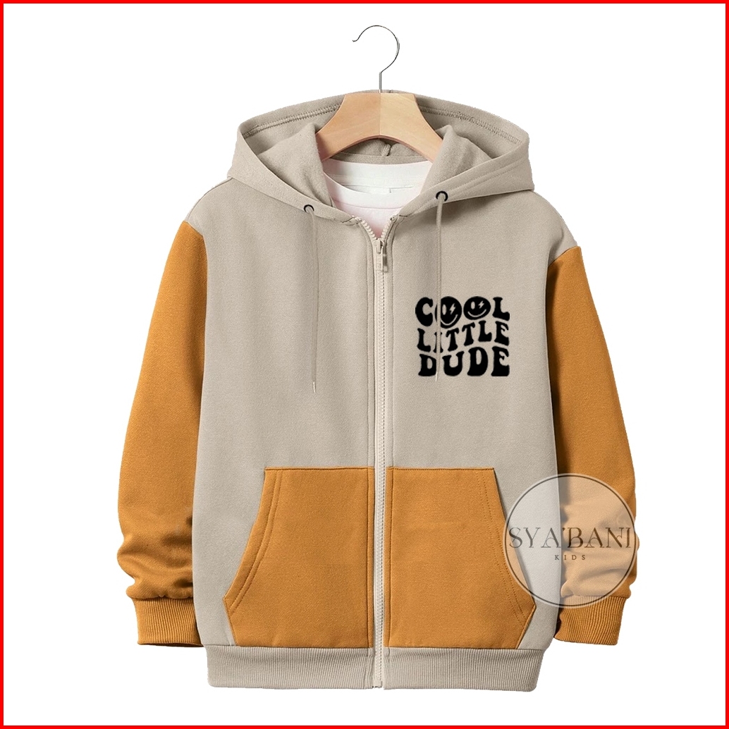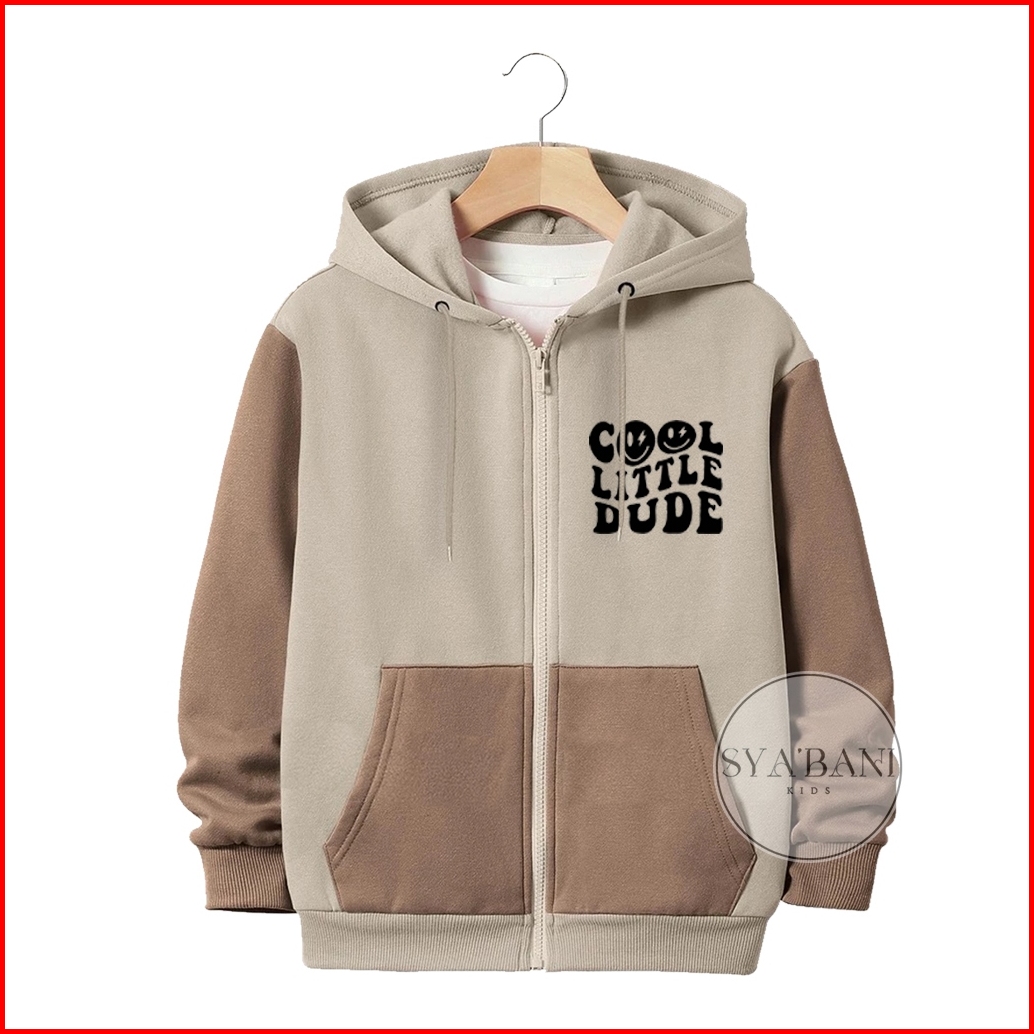 Jaket Zipper Anak Laki-laki Perempuan Usia 2-13 Tahun Sablon Cool Little Kombinasi Fleece