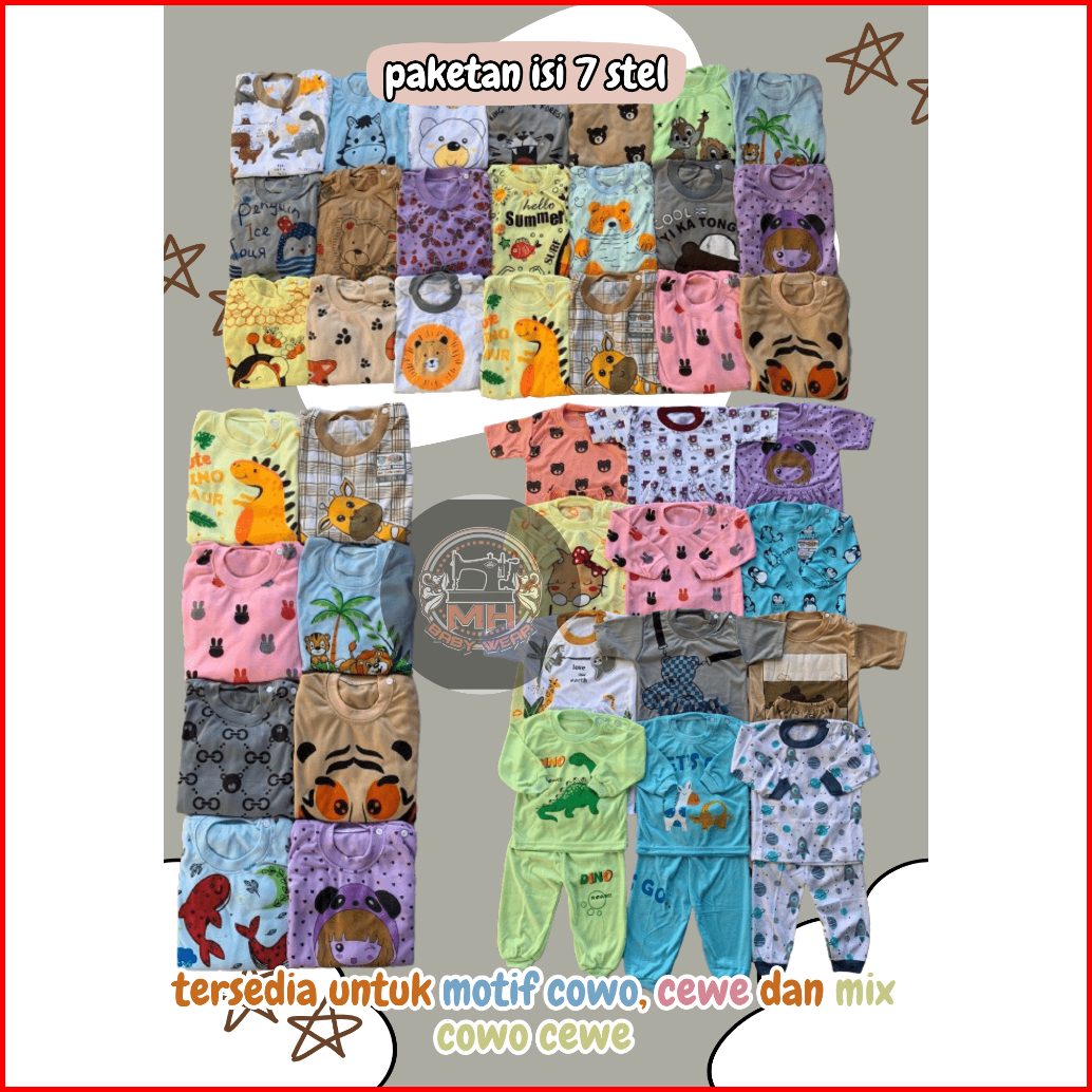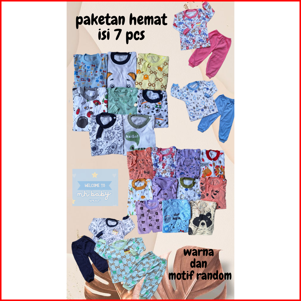 Isi 7 Pcs Setelan Baju Anak 3-18 Bulan Laki Laki Perempuan Motif Dan Warna Random
