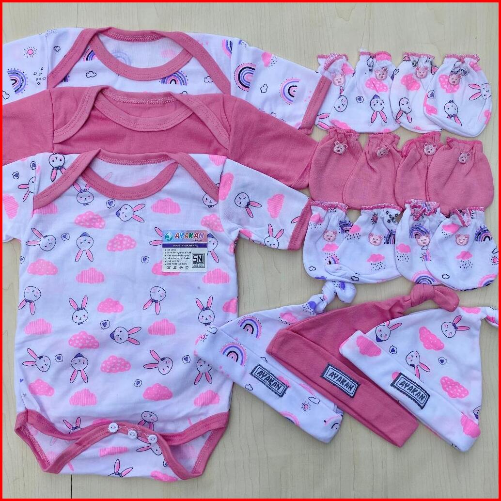 Ayakan Baby - Paket Jumper 9in1 Set Bodysuit Topi Sartaki Bayi 0-3 Bulan Laki Laki Perempuan