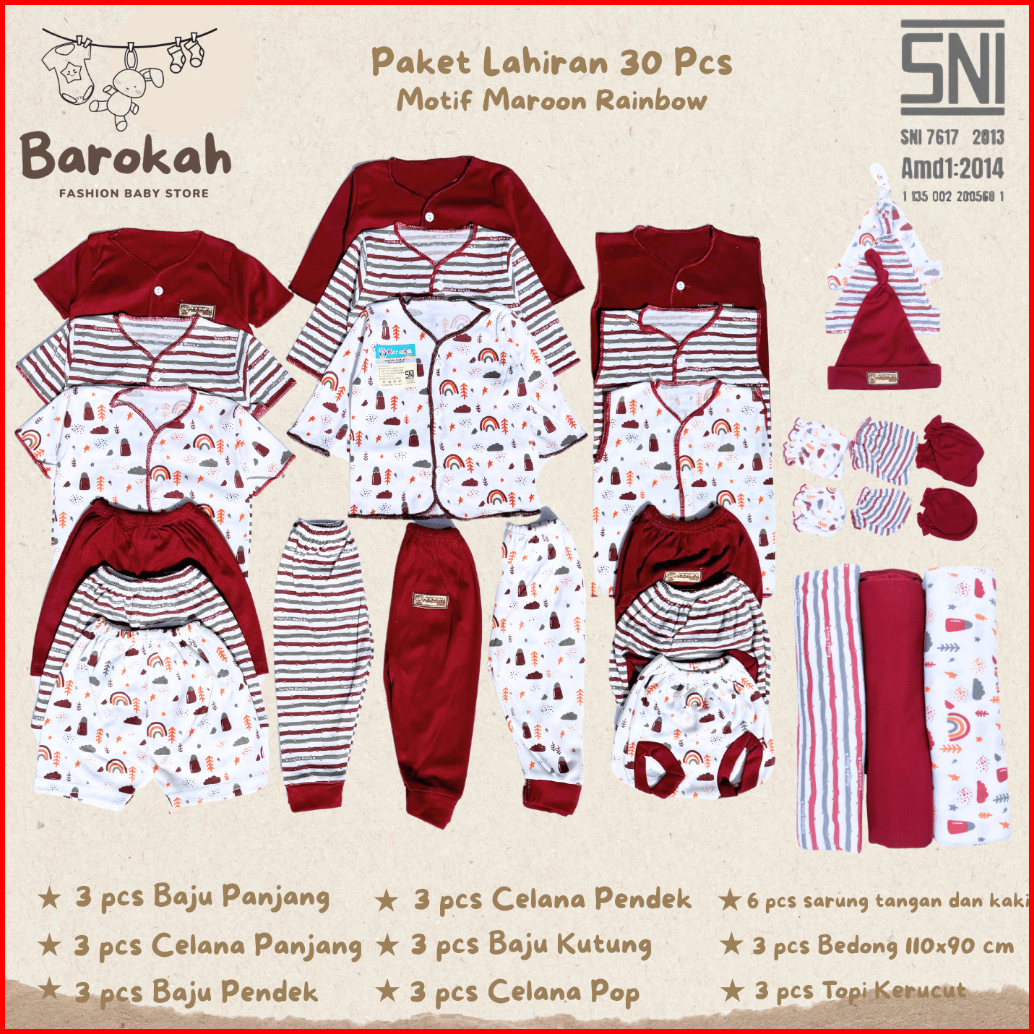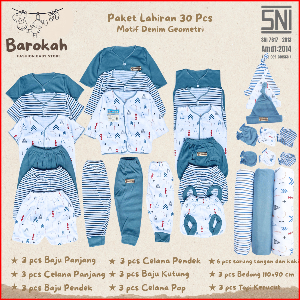 Sni 30pcs Paket Lahiran Stel Baju Celana Bayi Topi Bayi Sartaki Bedong Bayi - Barokahstore