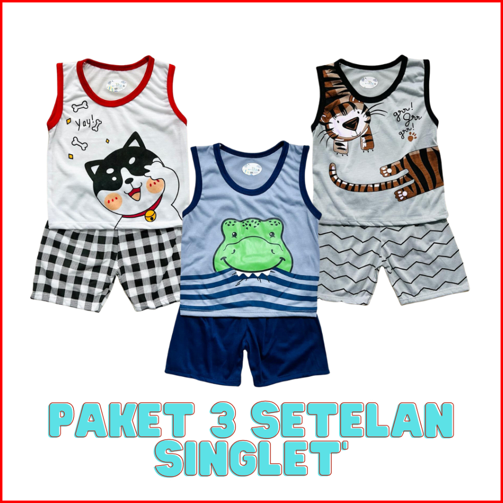 Promo Paket 3 Setelan Singlet Anak Bayi Celana Pendek Baju Baby Gracia