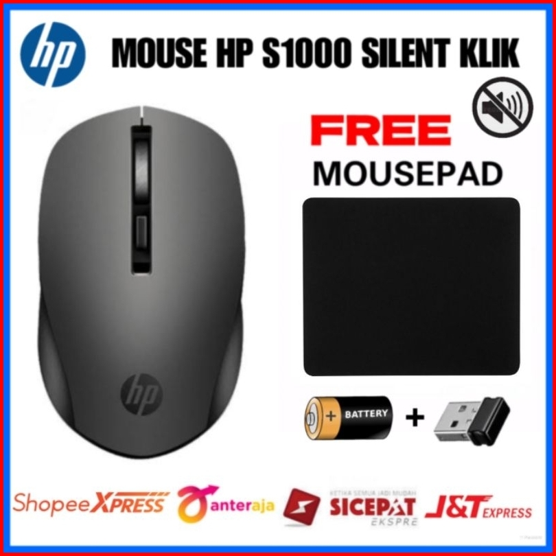 Mouse Wireless Hp S1000 Silent Plus Wireless Free Mousepad Polos 18x22cm
