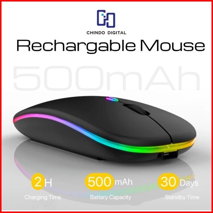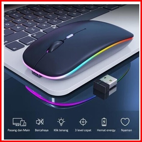 Mouse Wireless Gaming Silent Click Rechargeable Pc Rgb 2.4ghz 1600dpi Led Backlit Isi Ulang