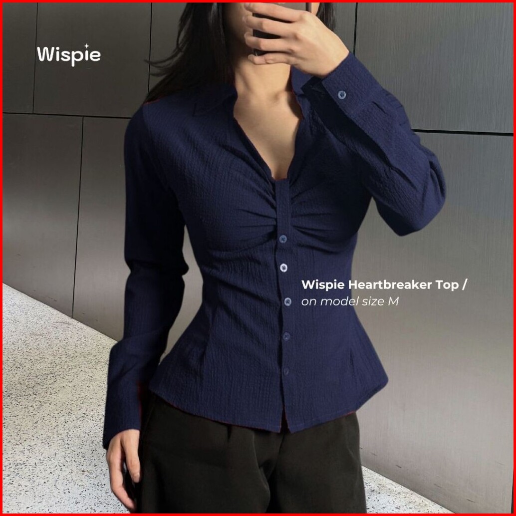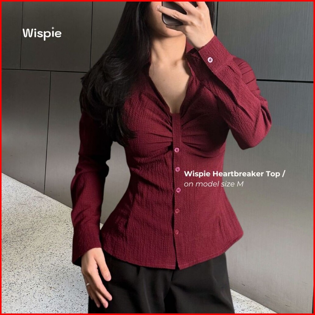 Wispie Heartbreaker Top Atasan Wanita Fitted Slim Fit Tekstur Maroon Navy Pink