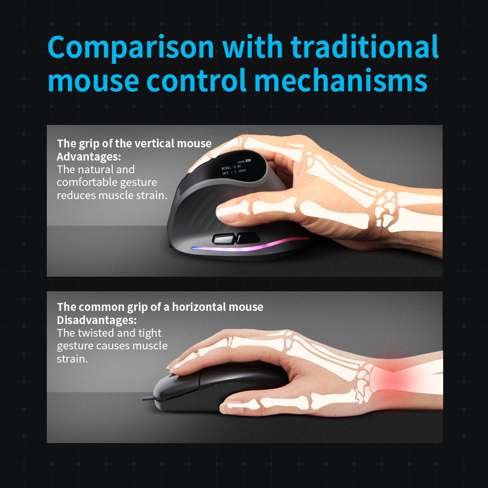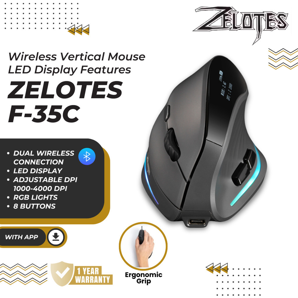 Zelotes F35C Silent Click Bluetooth Wireless 2.4G RGB Programmable Vertical Macro Mouse With Oled Display