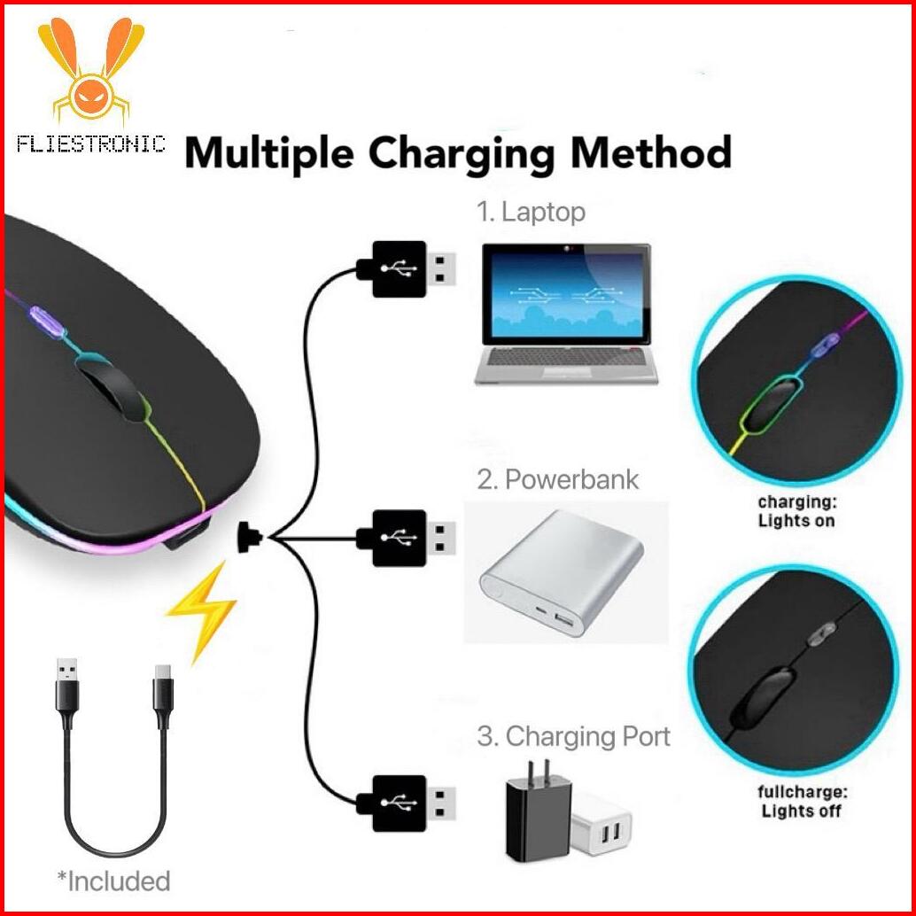 Fliestronic Mouse Bluetooth Mouse Wireless Mouse Nirkable Rechargerable Led Colorfull