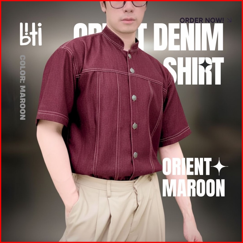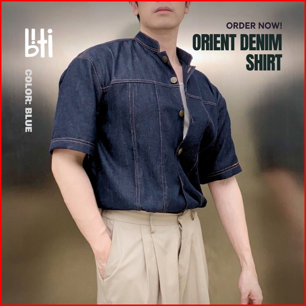 Biti Orient Denim Shirt Kemeja Outer Koko Denim Jeans Pria Lengan Pendek Kerah Shanghai Oriental